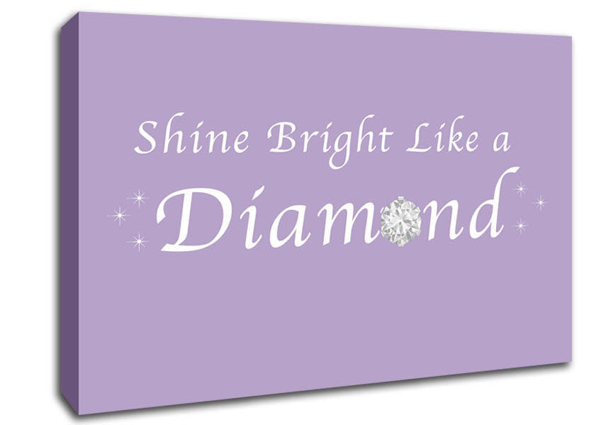 Music Quote Shine Bright Like A Diamond Rihanna Lilac Canvas Print handmade in the UK. Stretched over a 2 inch thick wooden box frame, ready to hang on your wall.