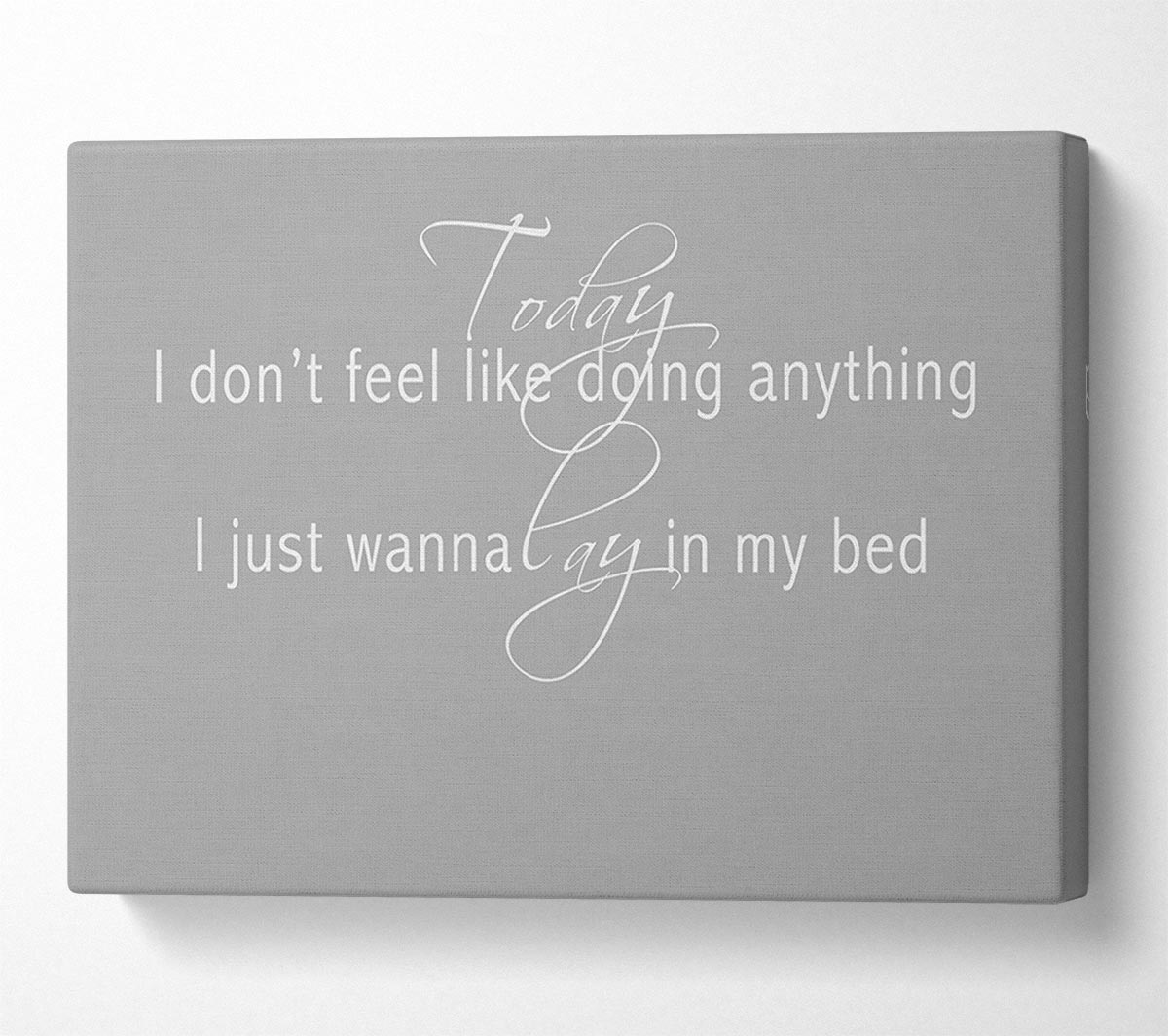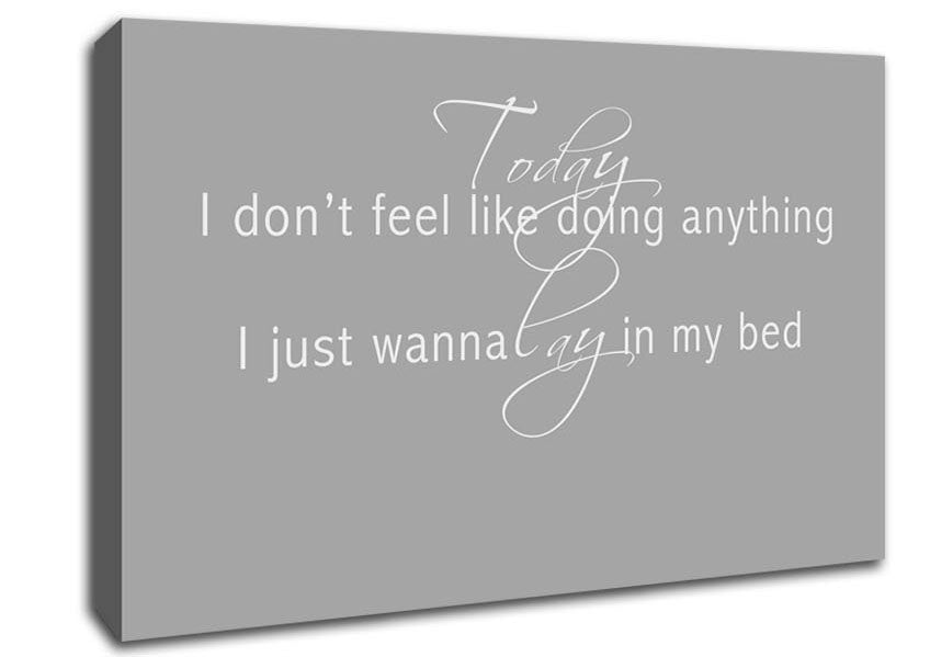 Music Quote Today I Dont Feel Like Bruno Mars Grey White Canvas Print handmade in the UK. Stretched over a 2 inch thick wooden box frame, ready to hang on your wall.