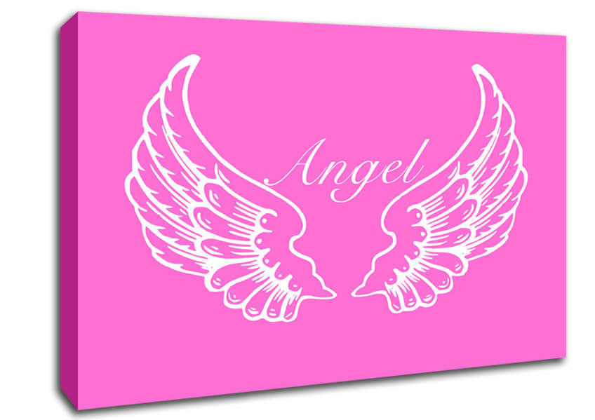 Nursery Quote Angel Wings Vivid Pink Canvas Print handmade in the UK. Stretched over a 2 inch thick wooden box frame, ready to hang on your wall.