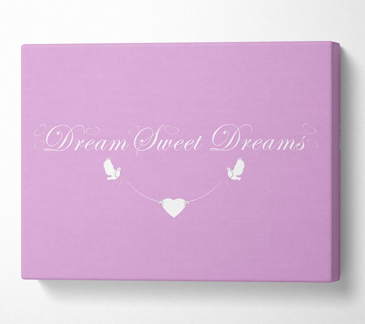 Nursery Quote Dream Sweet Dreams Pink Canvas Print handmade in the UK. Stretched over a 2 inch thick wooden box frame, ready to hang on your wall.