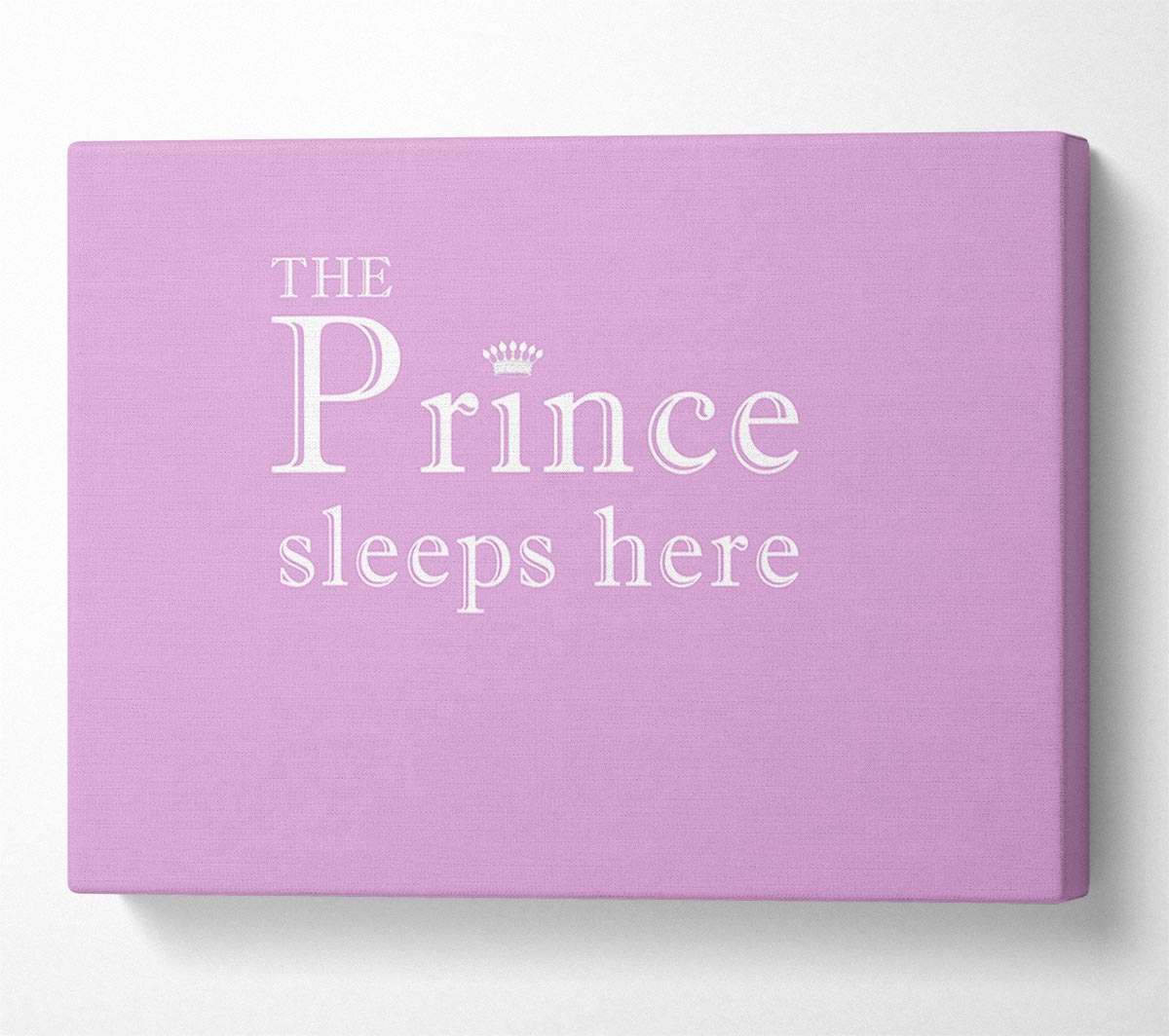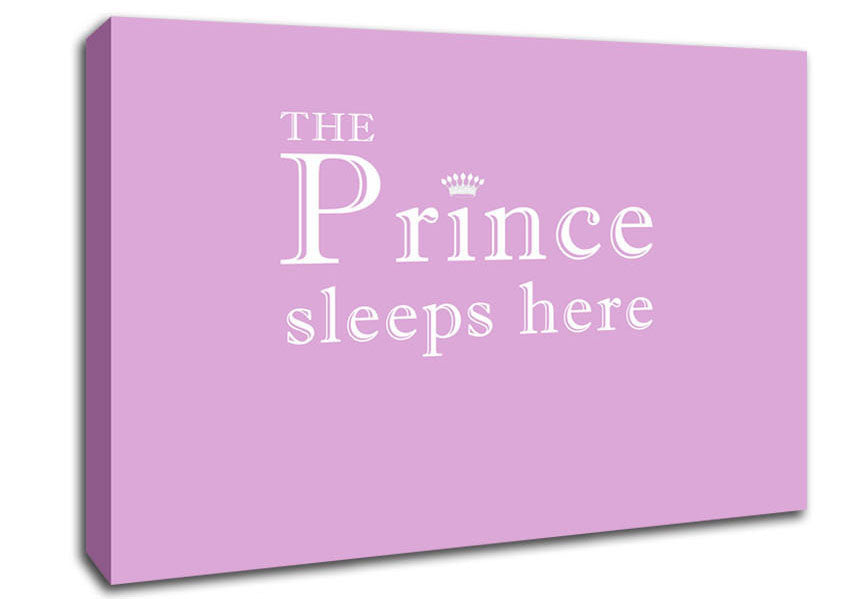 Nursery Quote The Prince Sleeps Here Pink Canvas Print handmade in the UK. Stretched over a 2 inch thick wooden box frame, ready to hang on your wall.