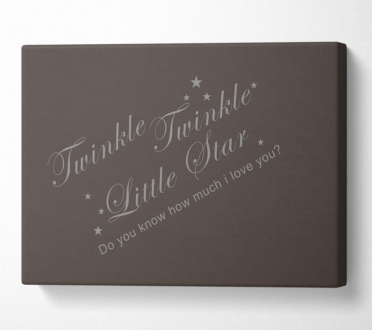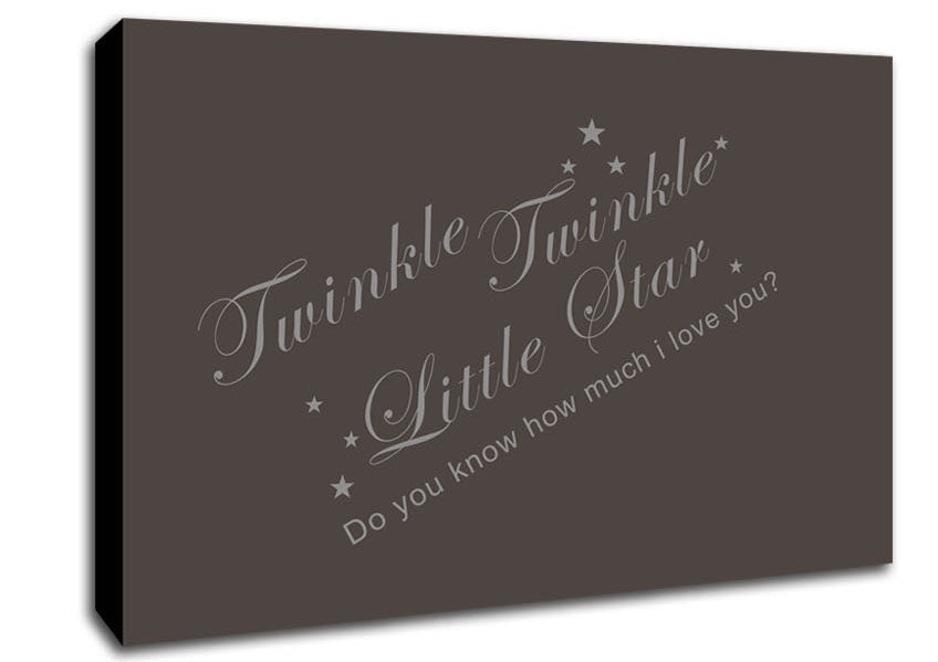 Nursery Quote Twinkle Twinkle Little Star 2 Chocolate Canvas Print handmade in the UK. Stretched over a 2 inch thick wooden box frame, ready to hang on your wall.