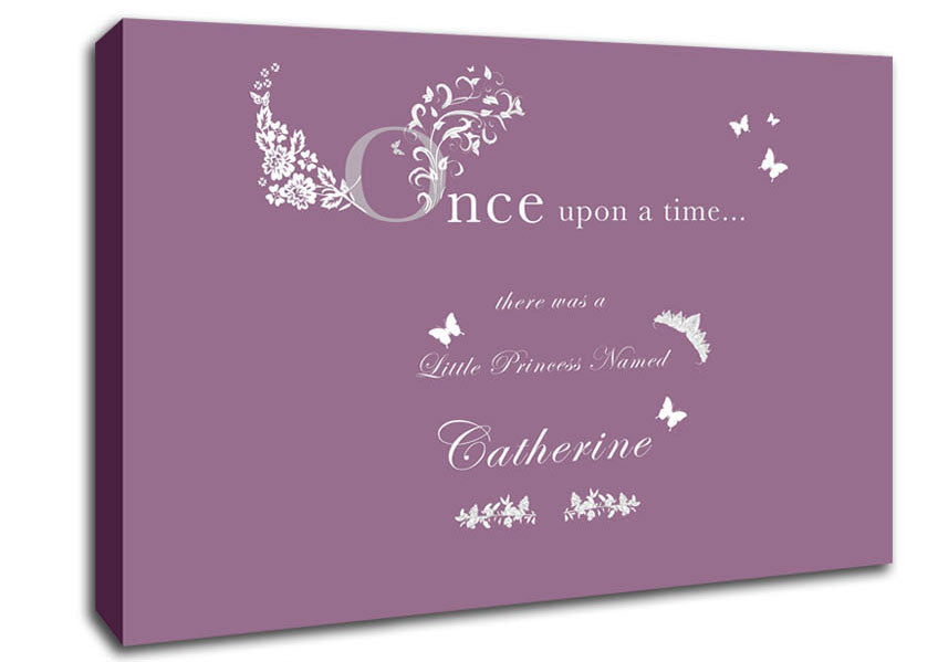 Once Upon A Time Your Name Dusty Pink Canvas Print handmade in the UK. Stretched over a 2 inch thick wooden box frame, ready to hang on your wall.