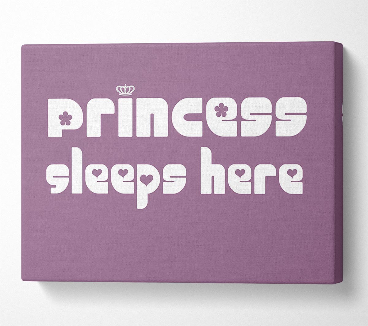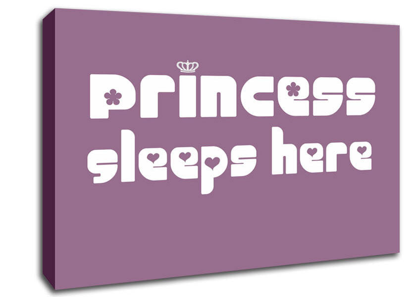 Princess sleeps 2 Dusty Pink Canvas Print handmade in the UK. Stretched over a 2 inch thick wooden box frame, ready to hang on your wall.