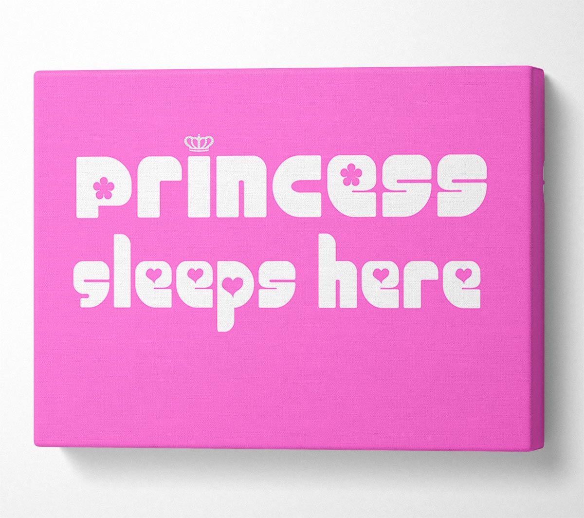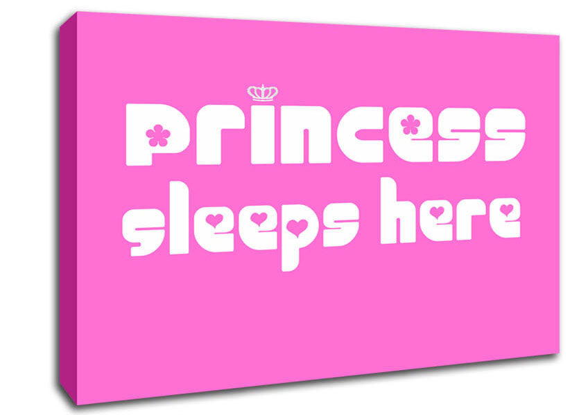 Princess sleeps 2 Vivid Pink Canvas Print handmade in the UK. Stretched over a 2 inch thick wooden box frame, ready to hang on your wall.