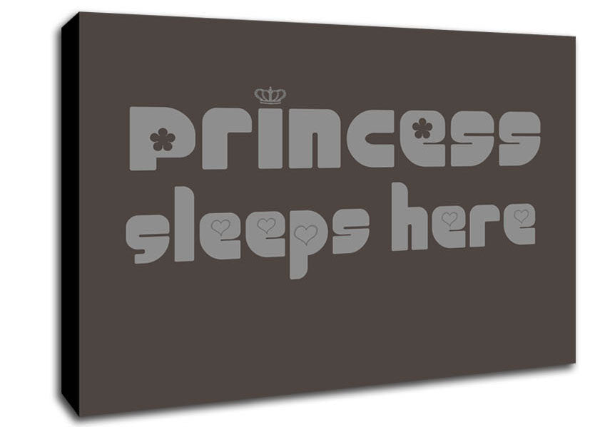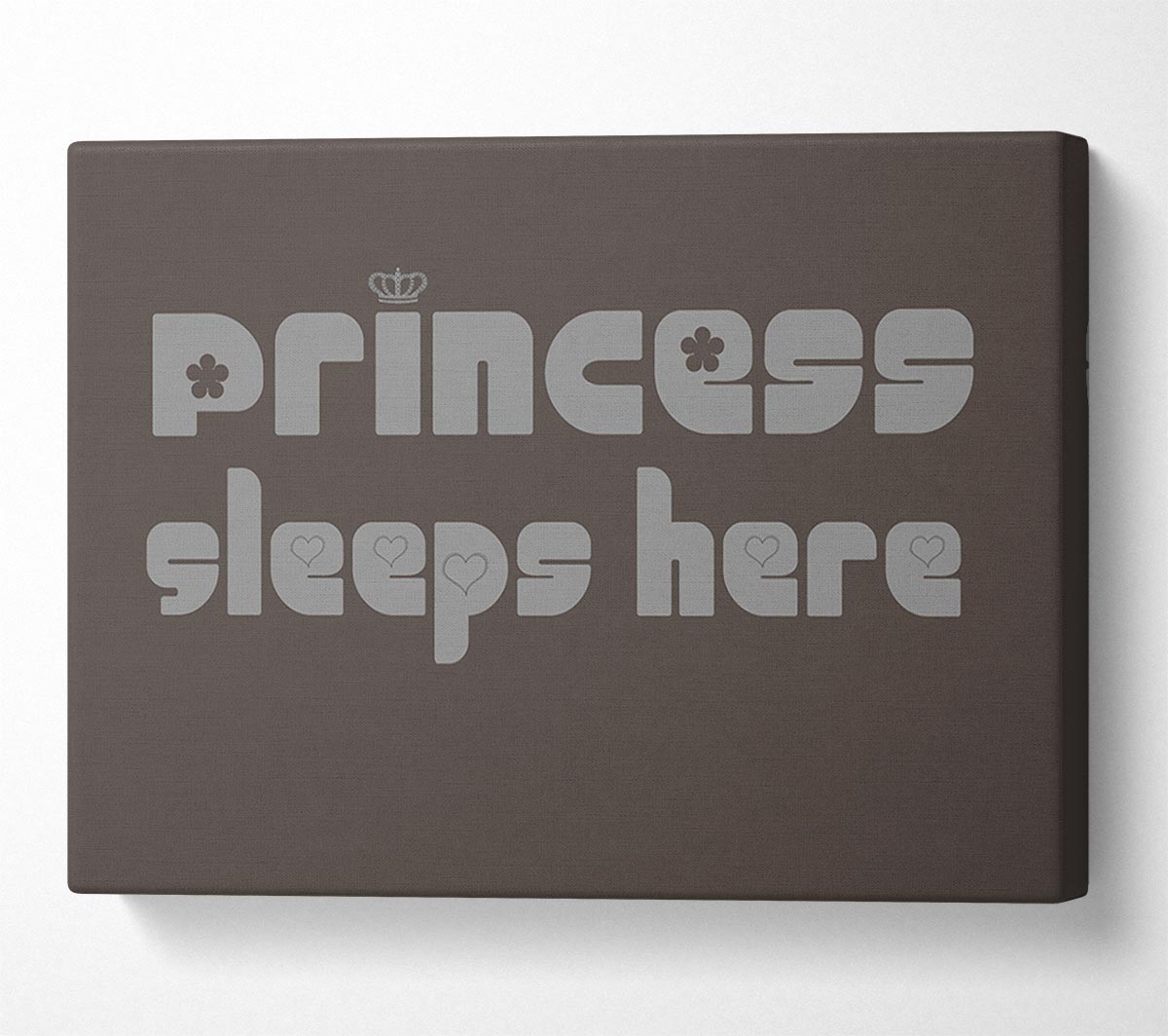 Princesss Sleeps Here 2 Chocolate Canvas Print handmade in the UK. Stretched over a 2 inch thick wooden box frame, ready to hang on your wall.