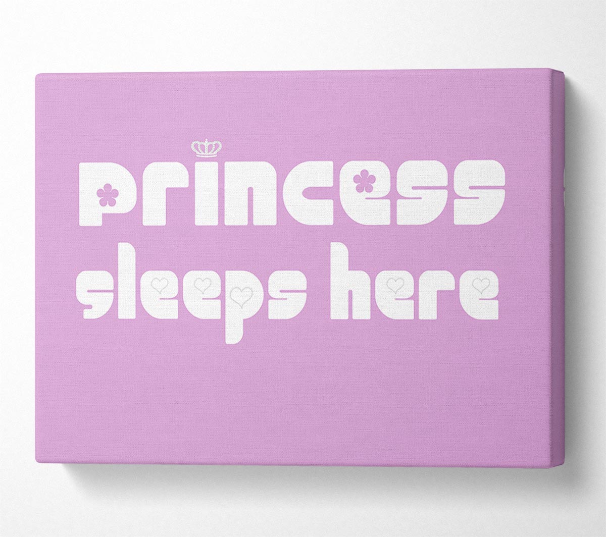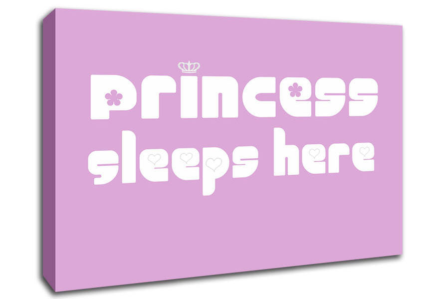 Princesss Sleeps Here 2 Pink Canvas Print handmade in the UK. Stretched over a 2 inch thick wooden box frame, ready to hang on your wall.