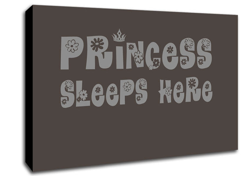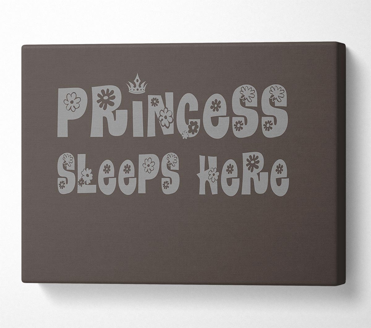 Princesss Sleeps Here Chocolate Canvas Print handmade in the UK. Stretched over a 2 inch thick wooden box frame, ready to hang on your wall.