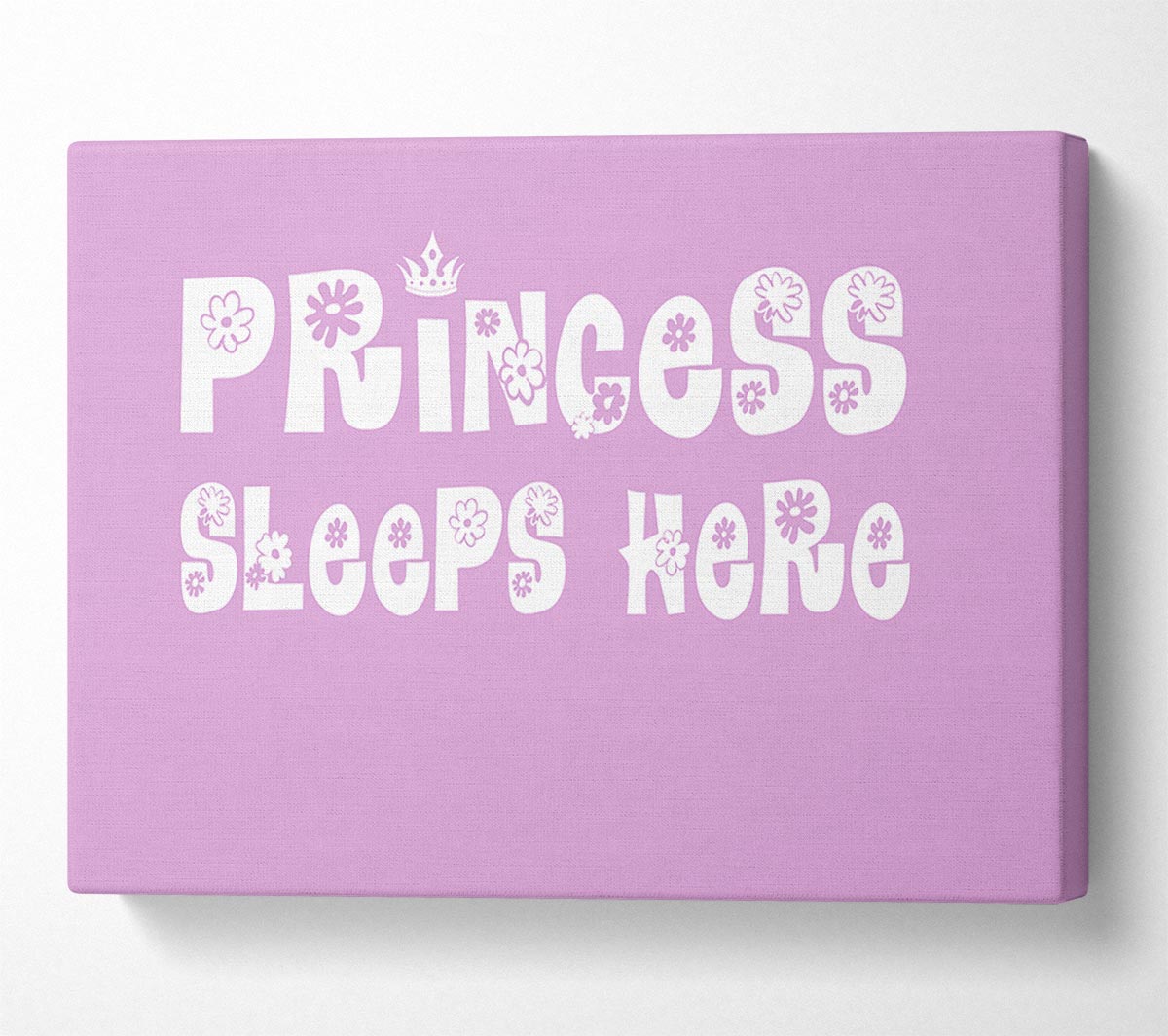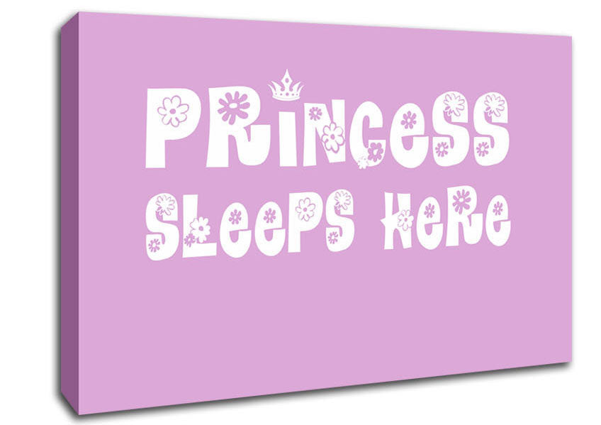 Princesss Sleeps Here Pink Canvas Print handmade in the UK. Stretched over a 2 inch thick wooden box frame, ready to hang on your wall.