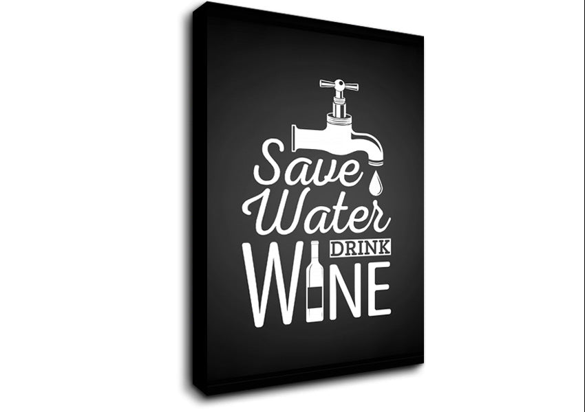 Save Water Drink Wine Canvas Print handmade in the UK. Stretched over a 2 inch thick wooden box frame, ready to hang on your wall.