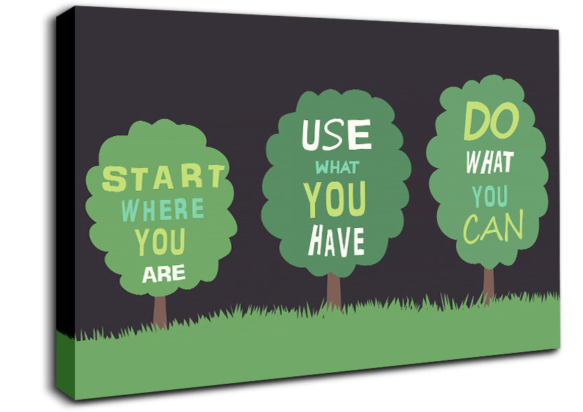 Start Where You Are Canvas Print handmade in the UK. Stretched over a 2 inch thick wooden box frame, ready to hang on your wall.