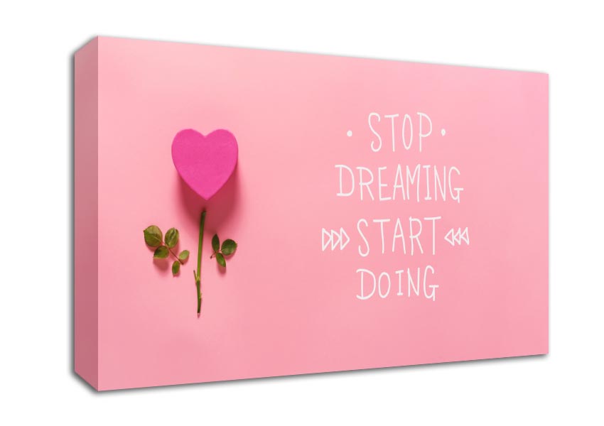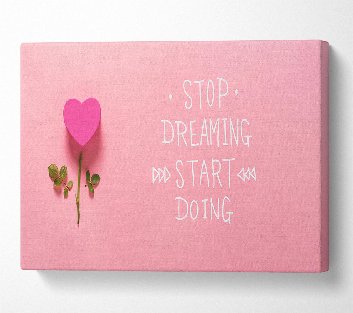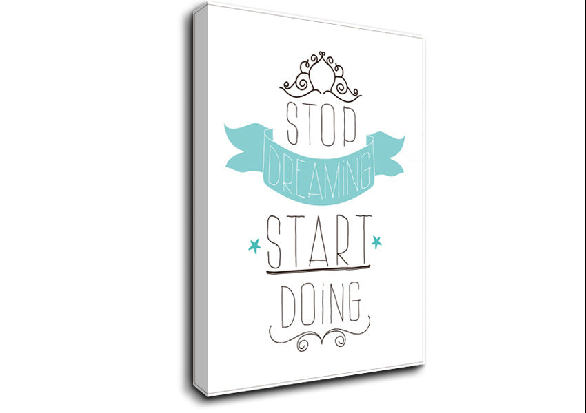 Stop Dreaming Start Doing Canvas Print handmade in the UK. Stretched over a 2 inch thick wooden box frame, ready to hang on your wall.