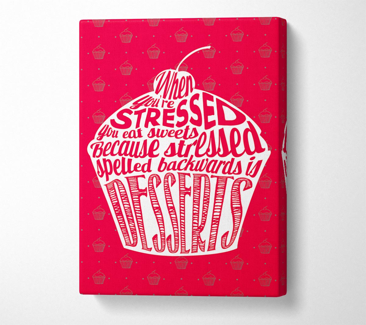 Stressed Spelled Backwards Desserts Canvas Print handmade in the UK. Stretched over a 2 inch thick wooden box frame, ready to hang on your wall.