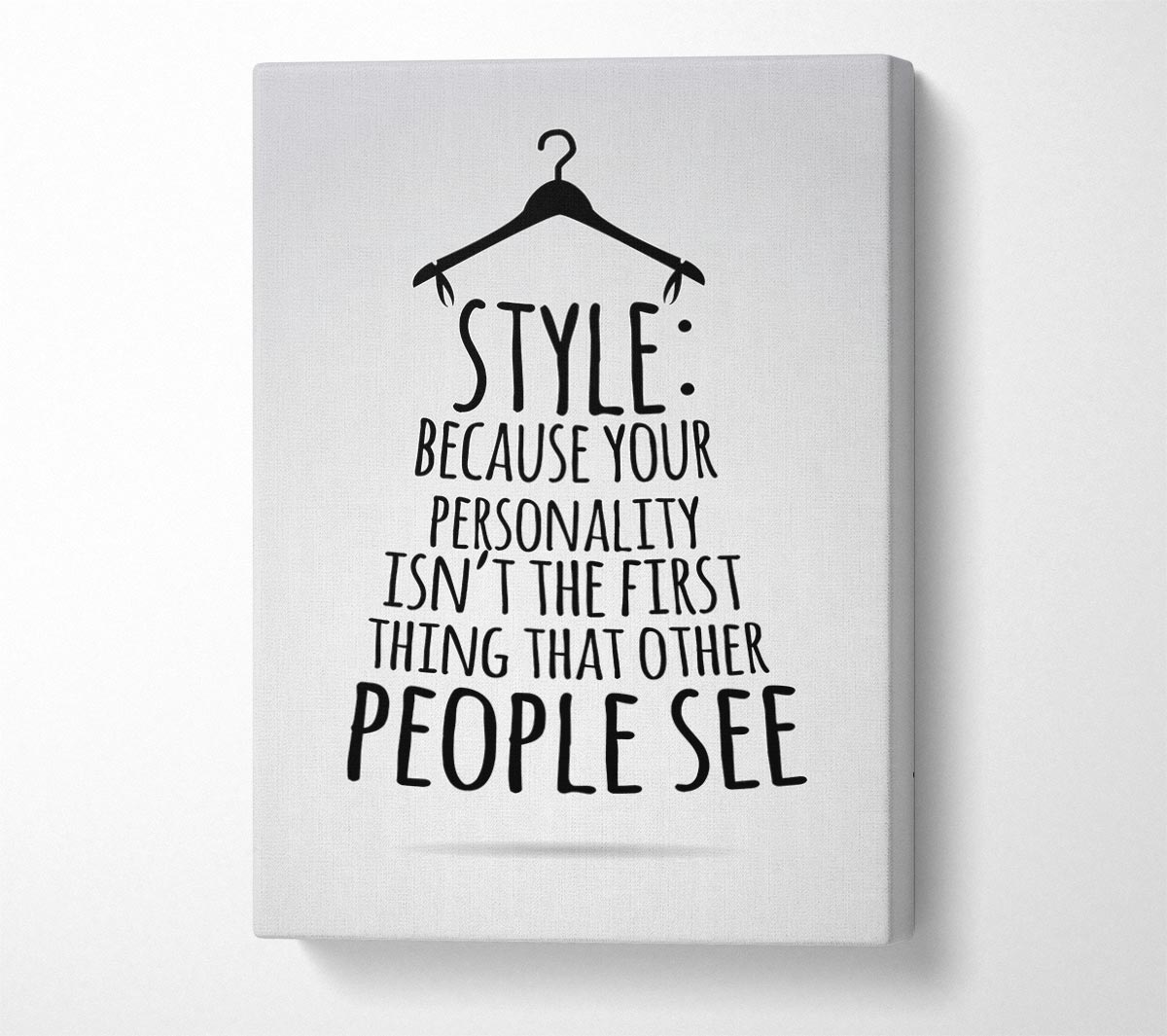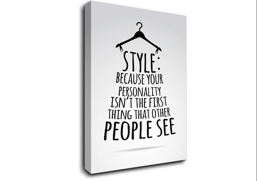 Style Because Your Personality Canvas Print handmade in the UK. Stretched over a 2 inch thick wooden box frame, ready to hang on your wall.