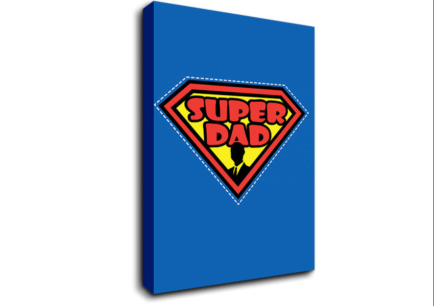 Super Dad Canvas Print handmade in the UK. Stretched over a 2 inch thick wooden box frame, ready to hang on your wall.