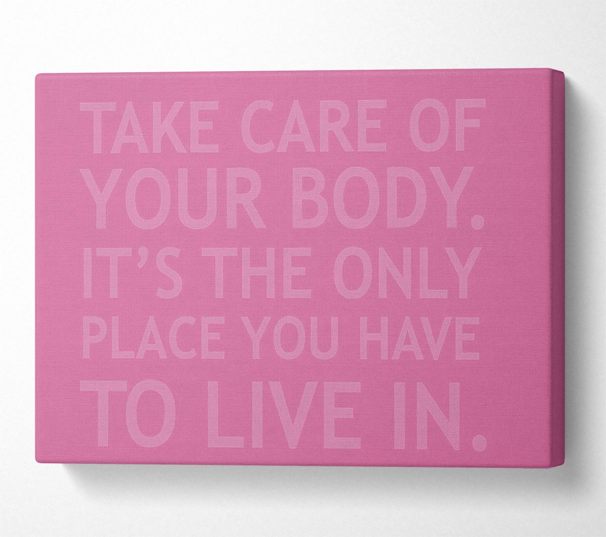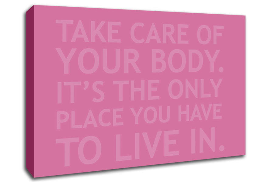 Take Care Of Your Body Pink Canvas Print handmade in the UK. Stretched over a 2 inch thick wooden box frame, ready to hang on your wall.