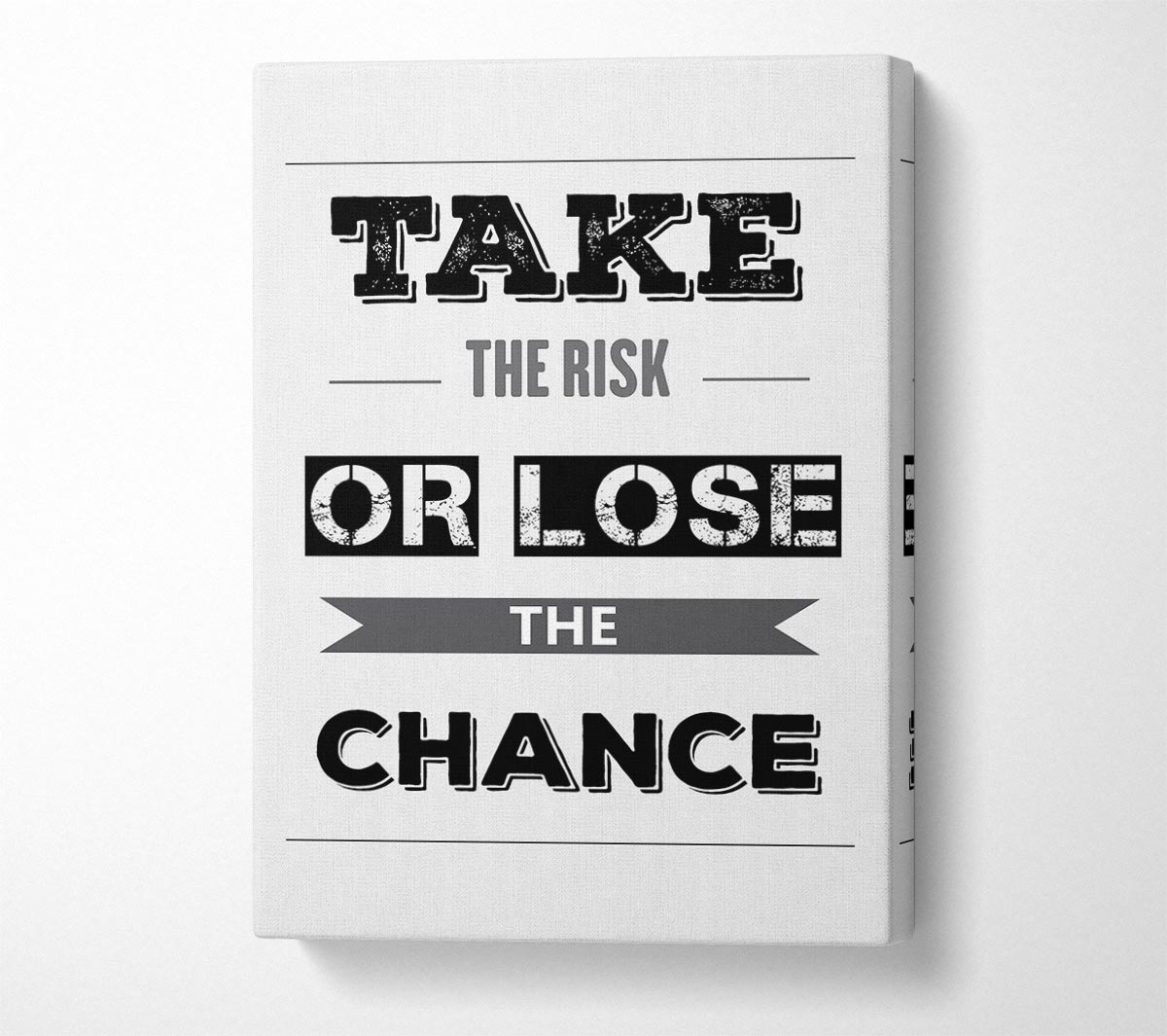 Take The Risk Or Lose Canvas Print handmade in the UK. Stretched over a 2 inch thick wooden box frame, ready to hang on your wall.