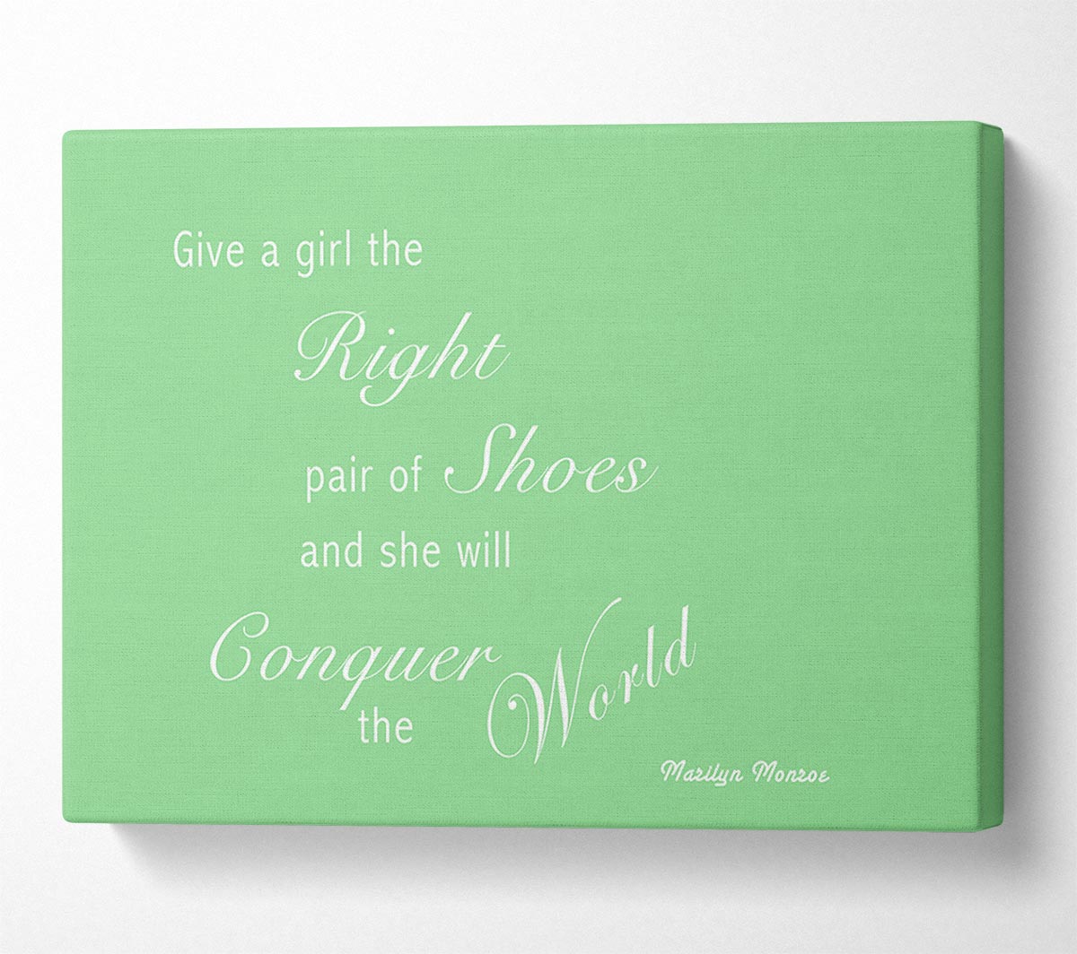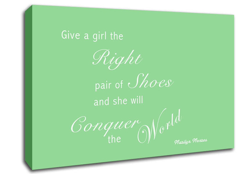 The Right Pair Of Shoes Marilyn Monroe Green Canvas Print handmade in the UK. Stretched over a 2 inch thick wooden box frame, ready to hang on your wall.