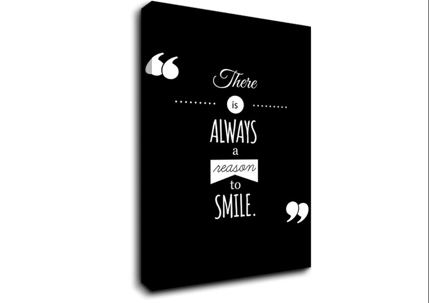 There Is Always A Reason To Smile Canvas Print handmade in the UK. Stretched over a 2 inch thick wooden box frame, ready to hang on your wall.