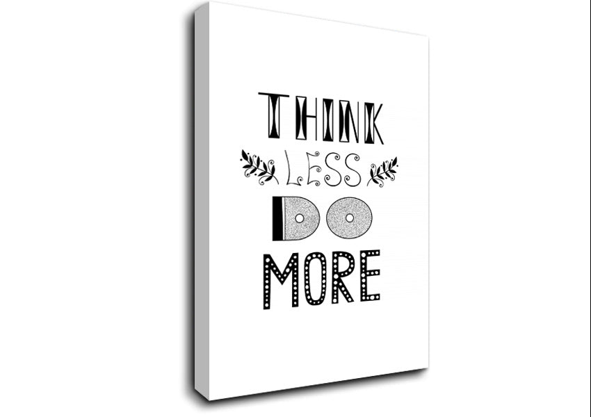 Think Less Do More Canvas Print handmade in the UK. Stretched over a 2 inch thick wooden box frame, ready to hang on your wall.