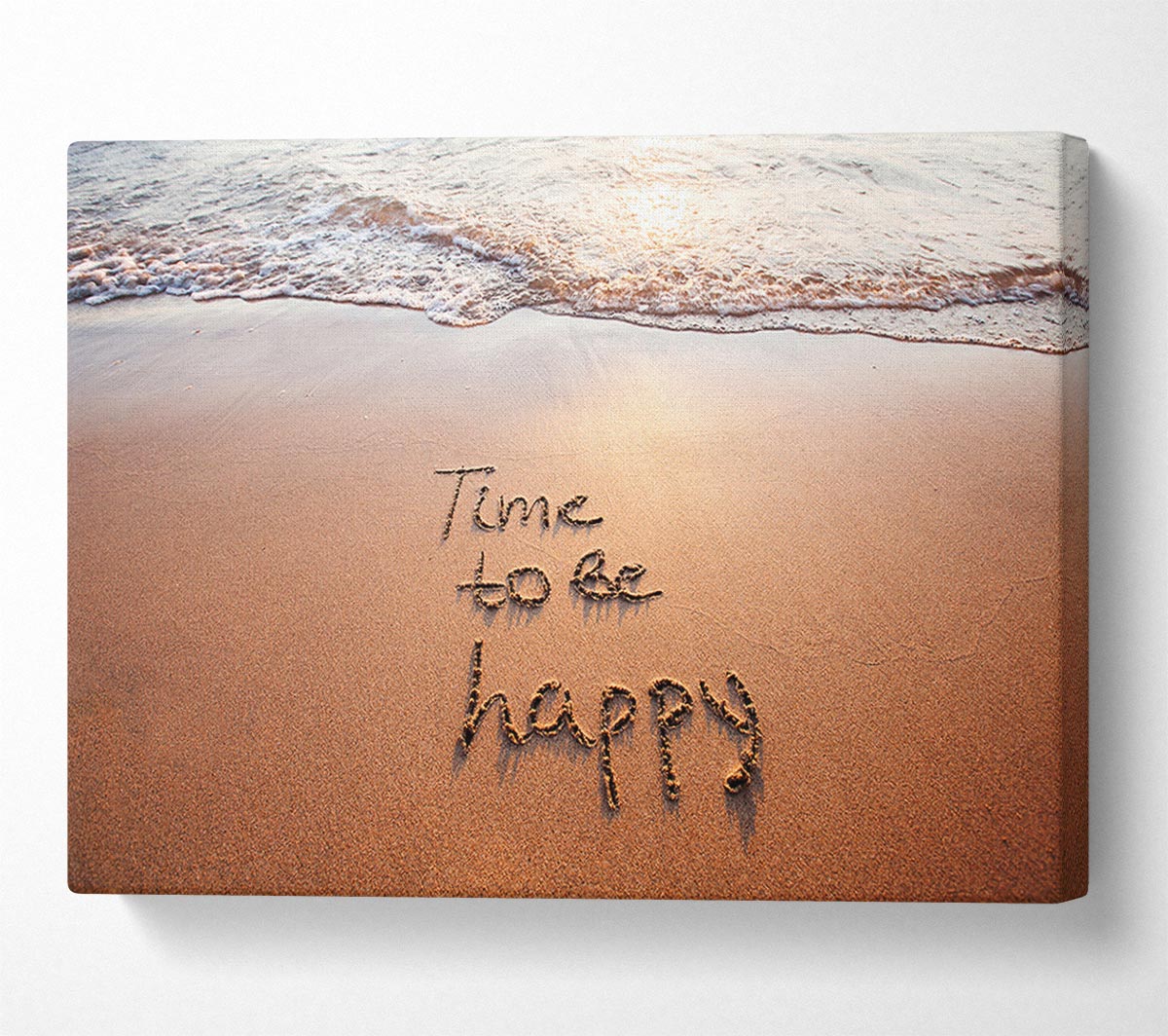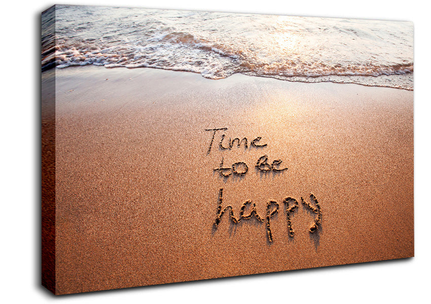 Time To Be Happy Canvas Print handmade in the UK. Stretched over a 2 inch thick wooden box frame, ready to hang on your wall.