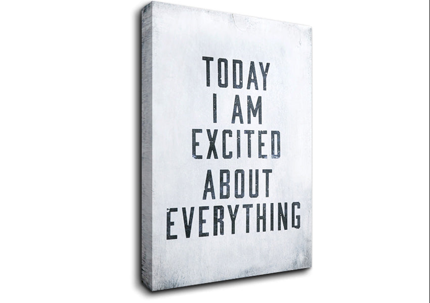 Today I Am Excited Canvas Print handmade in the UK. Stretched over a 2 inch thick wooden box frame, ready to hang on your wall.