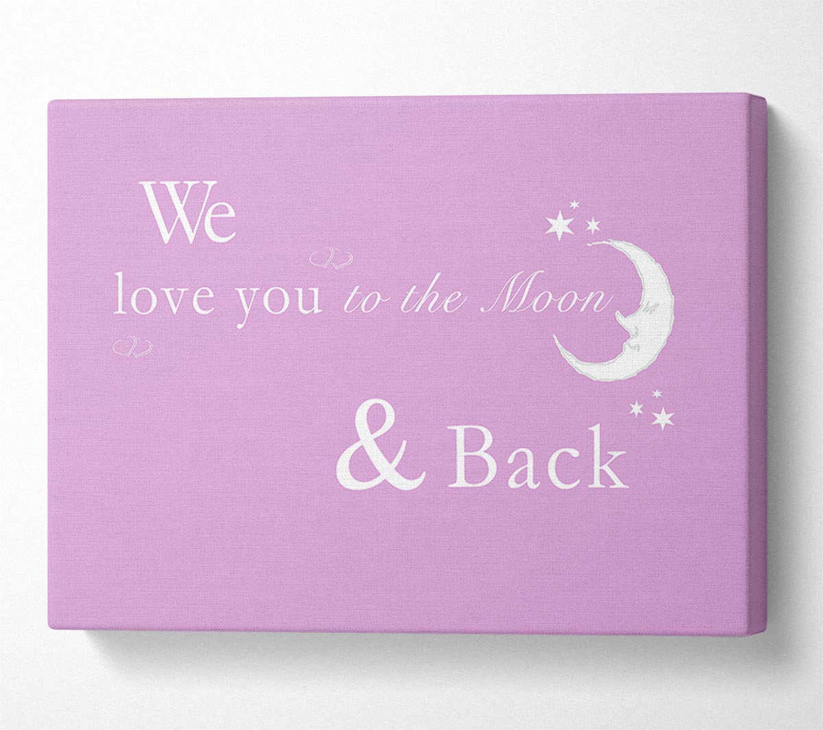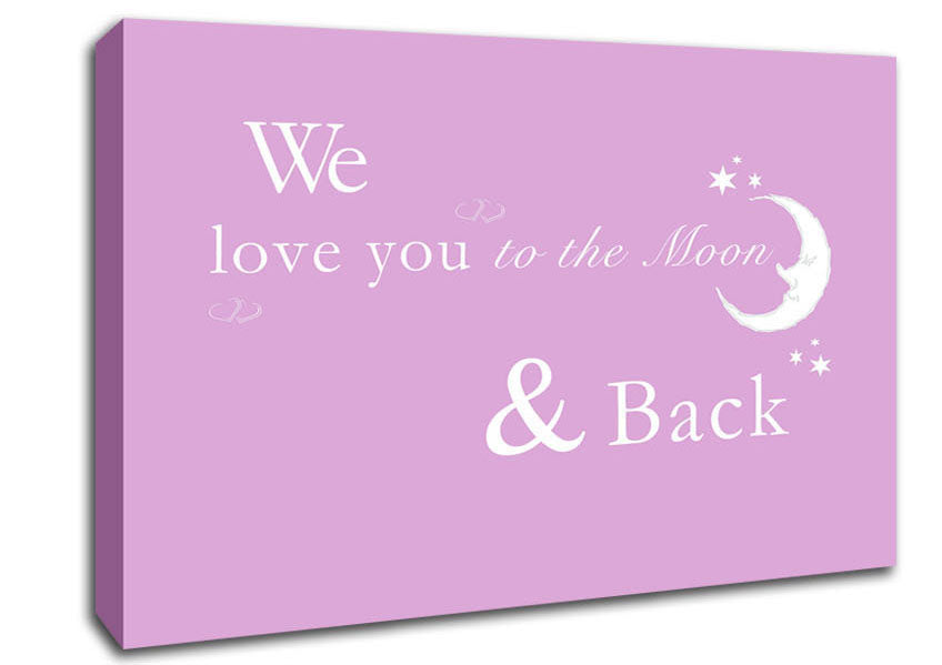 We Love You To The Moon And Back 2 Pink Canvas Print handmade in the UK. Stretched over a 2 inch thick wooden box frame, ready to hang on your wall.