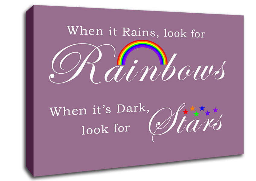 When It Rains Look For Rainbows 2 Dusty Pink Canvas Print handmade in the UK. Stretched over a 2 inch thick wooden box frame, ready to hang on your wall.