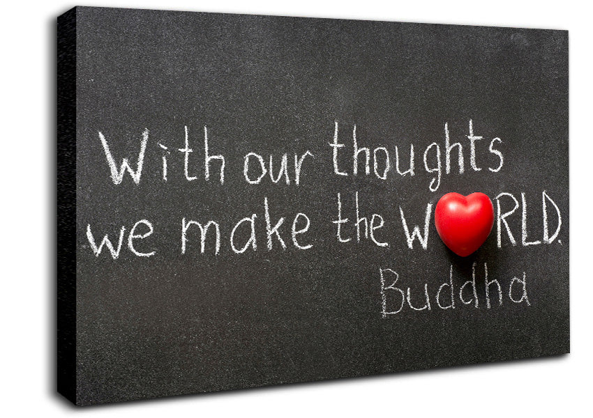 With Our Thoughts We Make The World Canvas Print handmade in the UK. Stretched over a 2 inch thick wooden box frame, ready to hang on your wall.