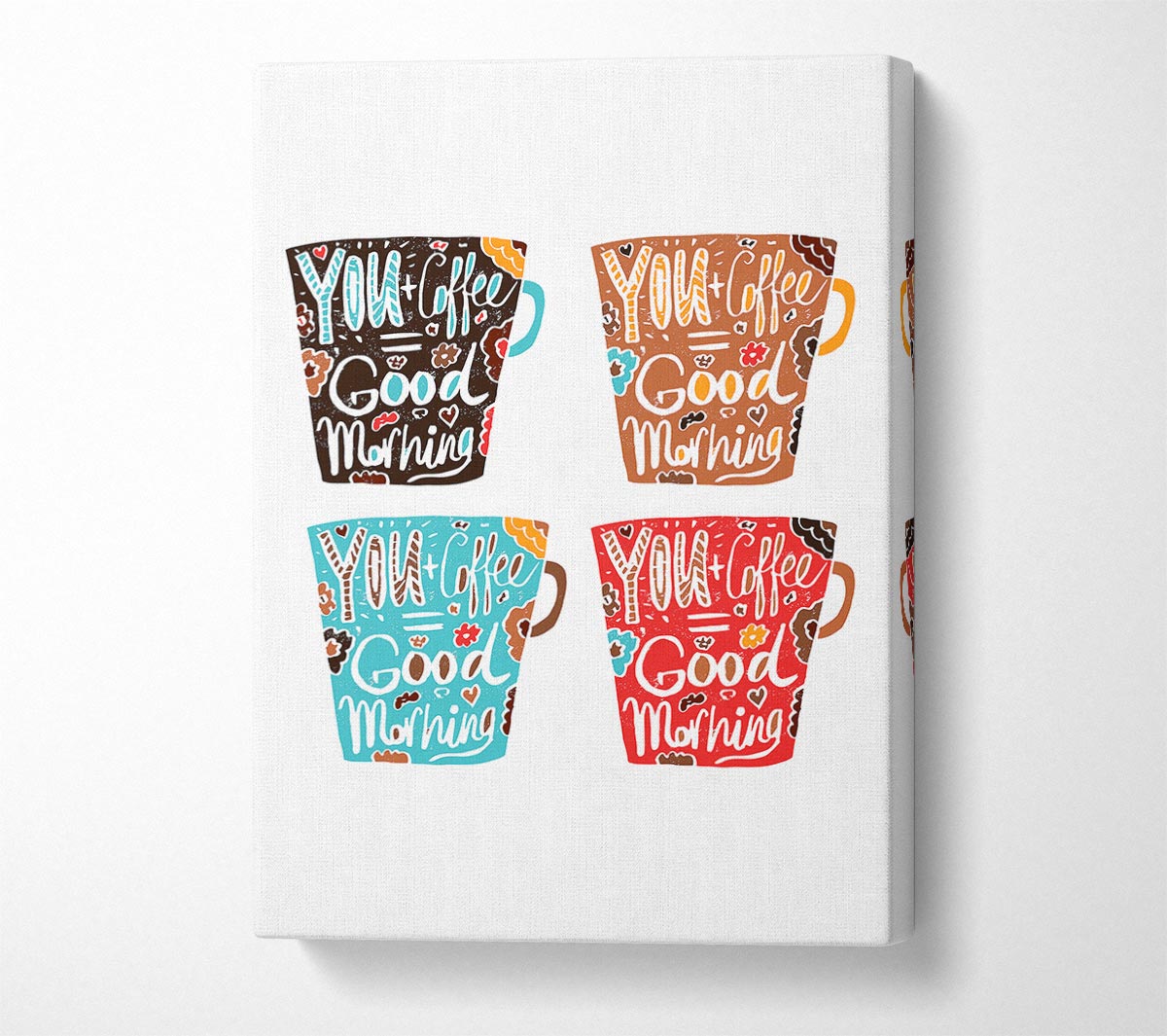 You Coffee Good Morning Canvas Print handmade in the UK. Stretched over a 2 inch thick wooden box frame, ready to hang on your wall.