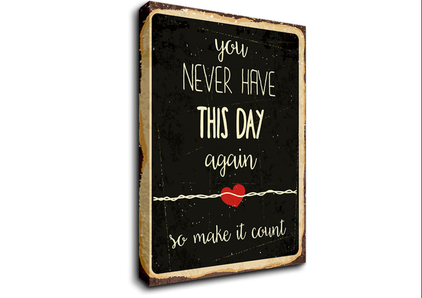 You Never Have This Day Again Canvas Print handmade in the UK. Stretched over a 2 inch thick wooden box frame, ready to hang on your wall.