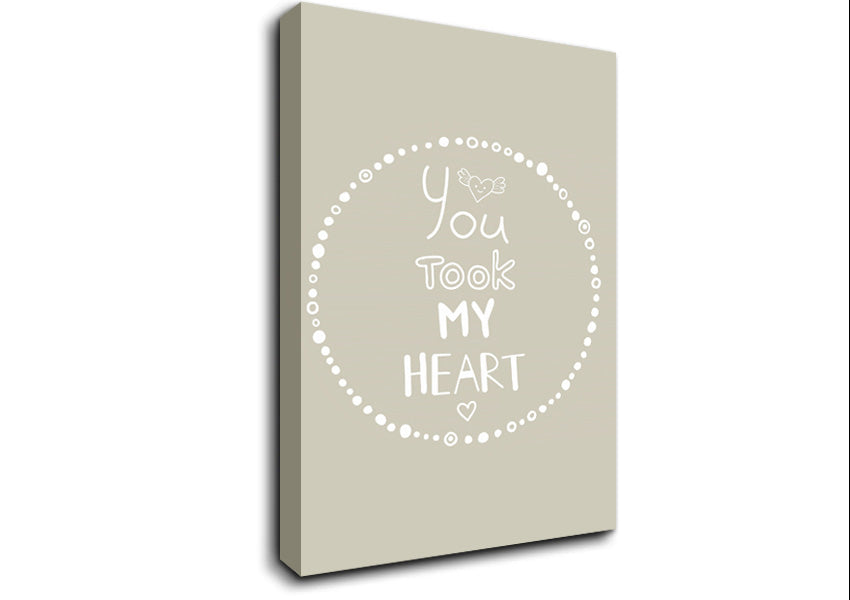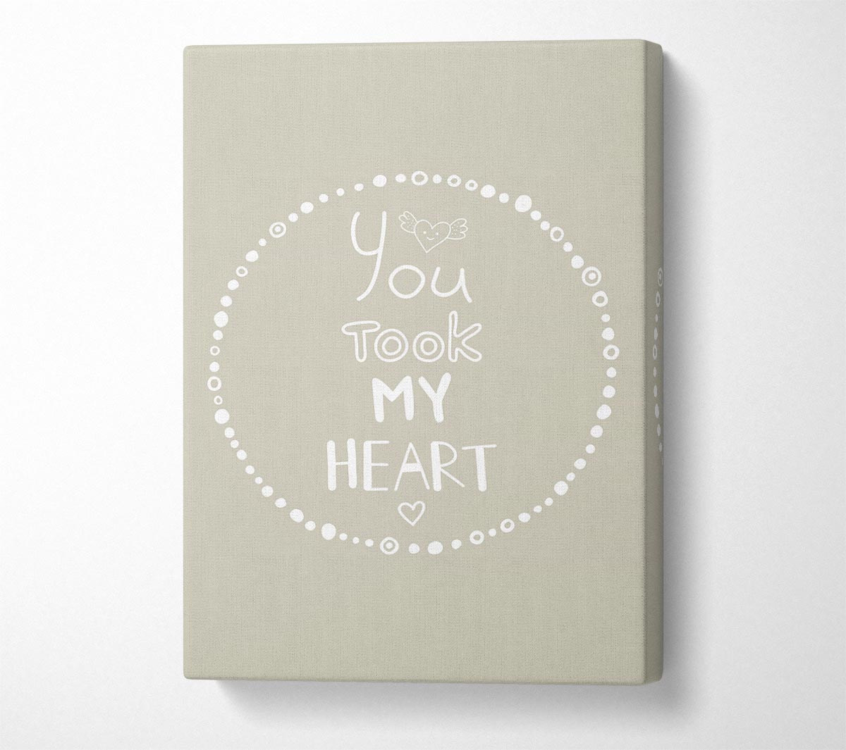You Took My Heart Canvas Print handmade in the UK. Stretched over a 2 inch thick wooden box frame, ready to hang on your wall.
