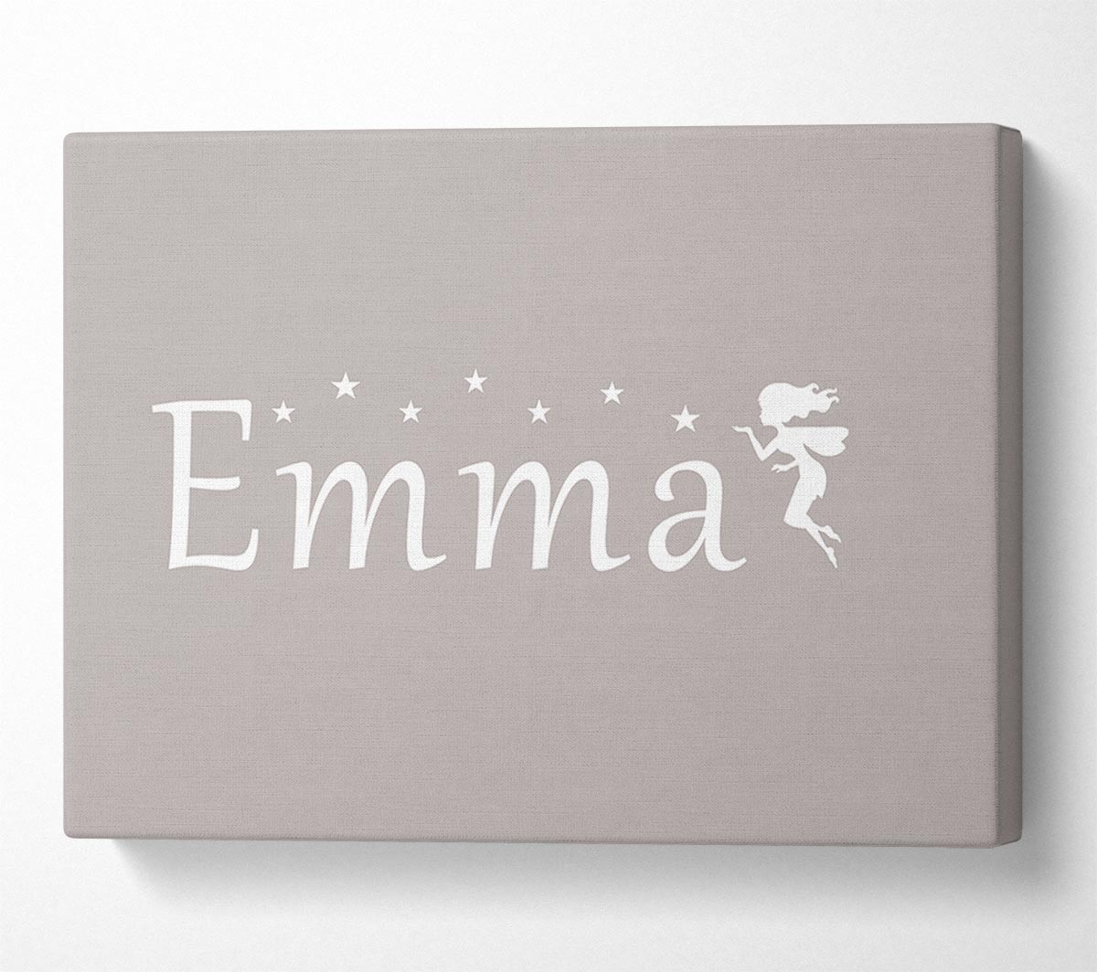 Your Name In Fairy Dust Beige Canvas Print handmade in the UK. Stretched over a 2 inch thick wooden box frame, ready to hang on your wall.