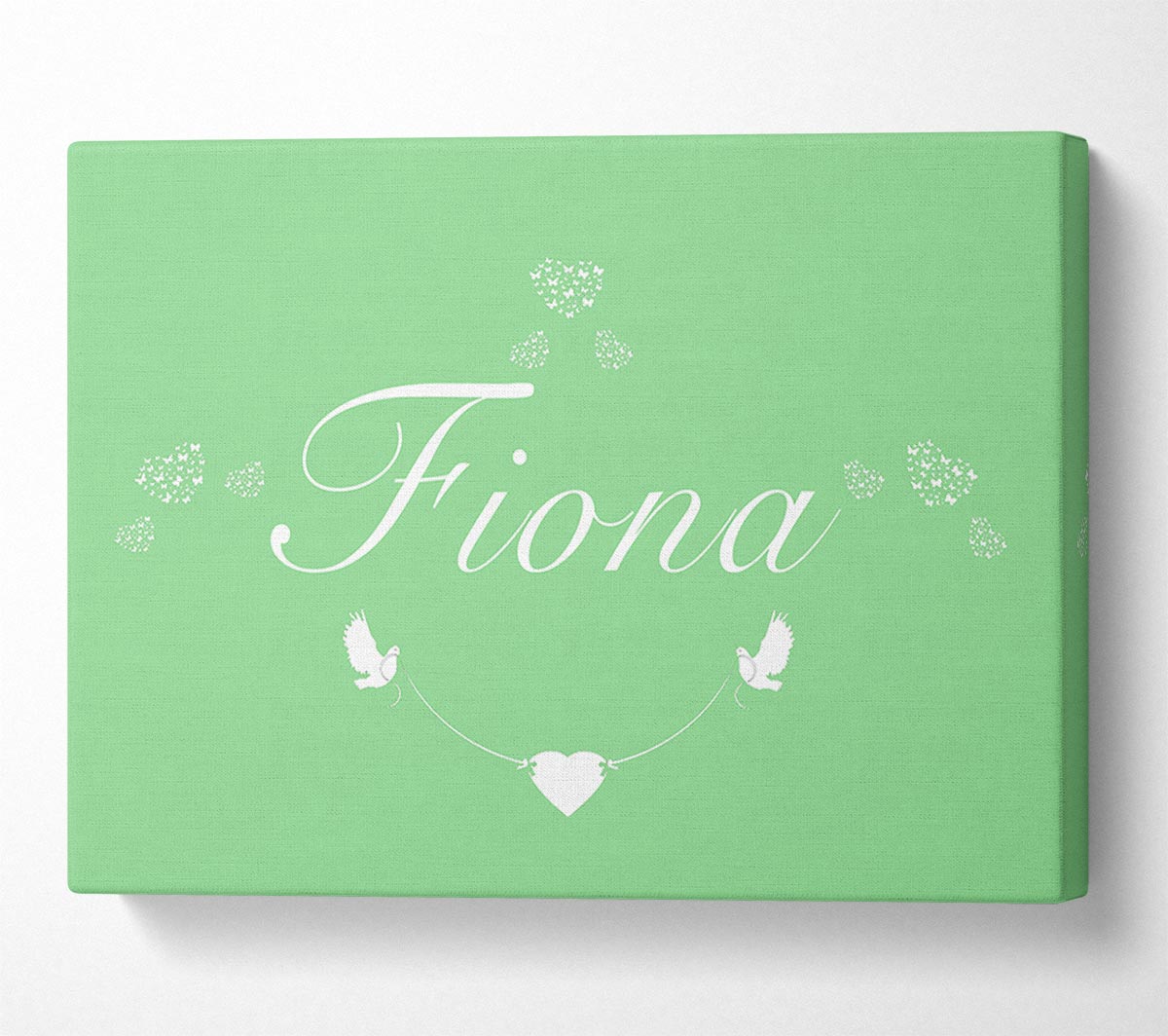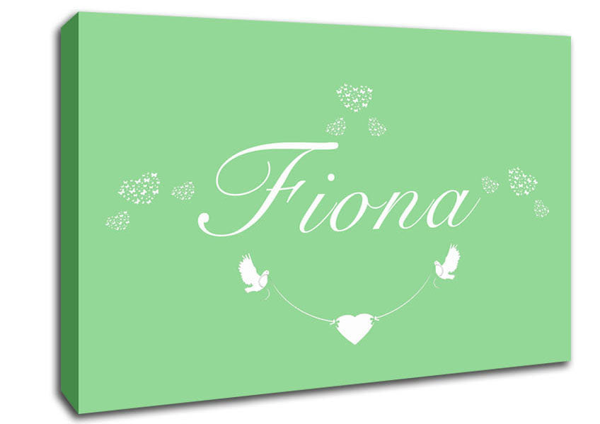 Your Name In Hearts Green Canvas Print handmade in the UK. Stretched over a 2 inch thick wooden box frame, ready to hang on your wall.