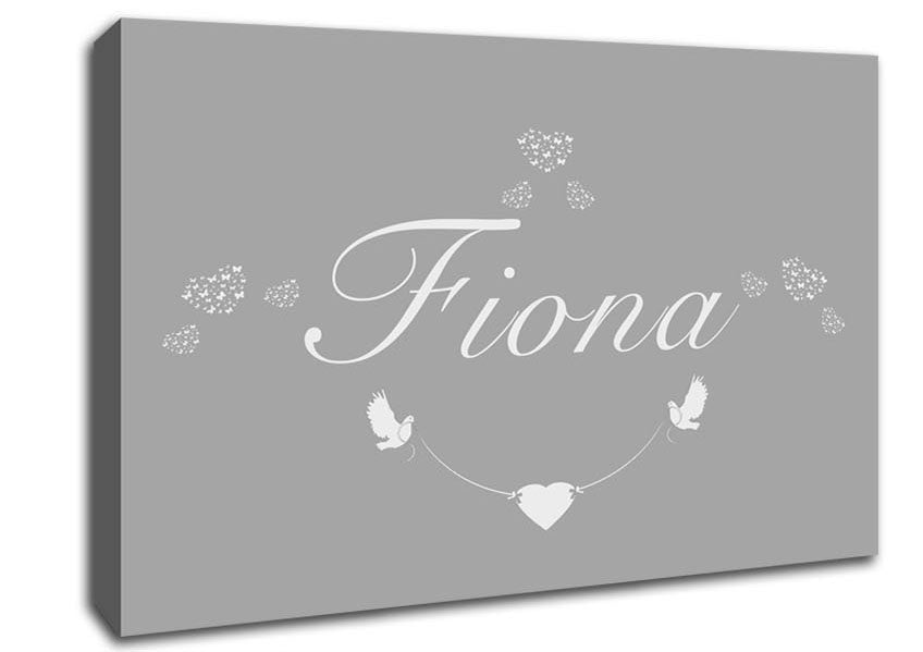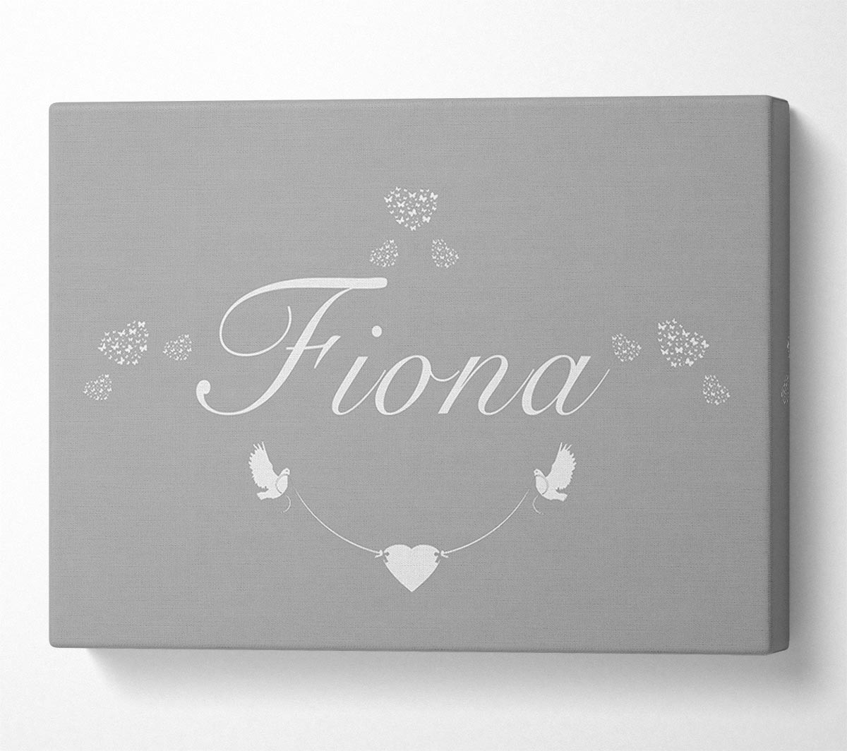Your Name In Hearts Grey White Canvas Print handmade in the UK. Stretched over a 2 inch thick wooden box frame, ready to hang on your wall.