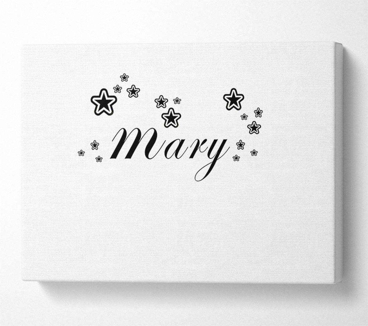 Your Name In Stars White Canvas Print handmade in the UK. Stretched over a 2 inch thick wooden box frame, ready to hang on your wall.