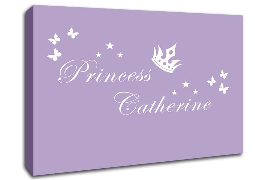 Your Own Name Princess 2 Lilac Canvas Print handmade in the UK. Stretched over a 2 inch thick wooden box frame, ready to hang on your wall.