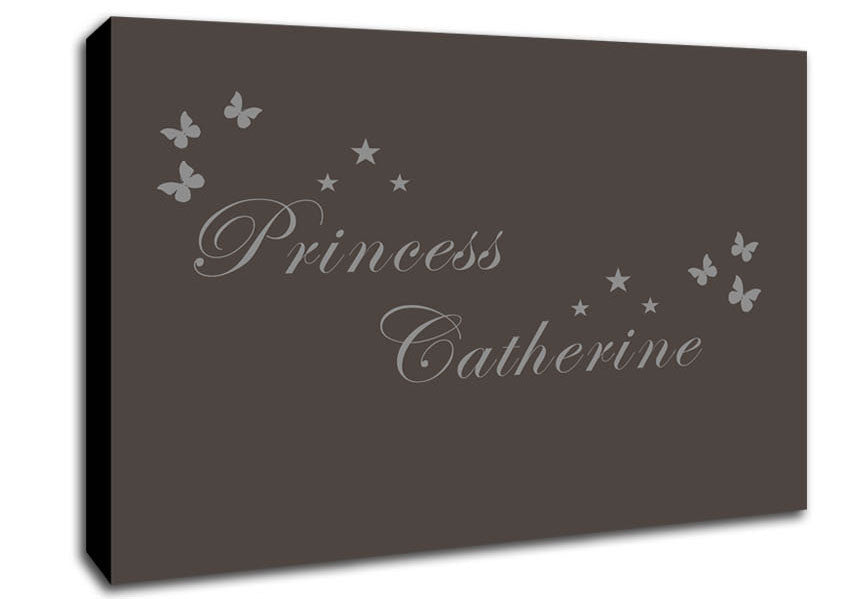Your Own Name Princess Chocolate Canvas Print handmade in the UK. Stretched over a 2 inch thick wooden box frame, ready to hang on your wall.