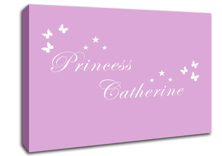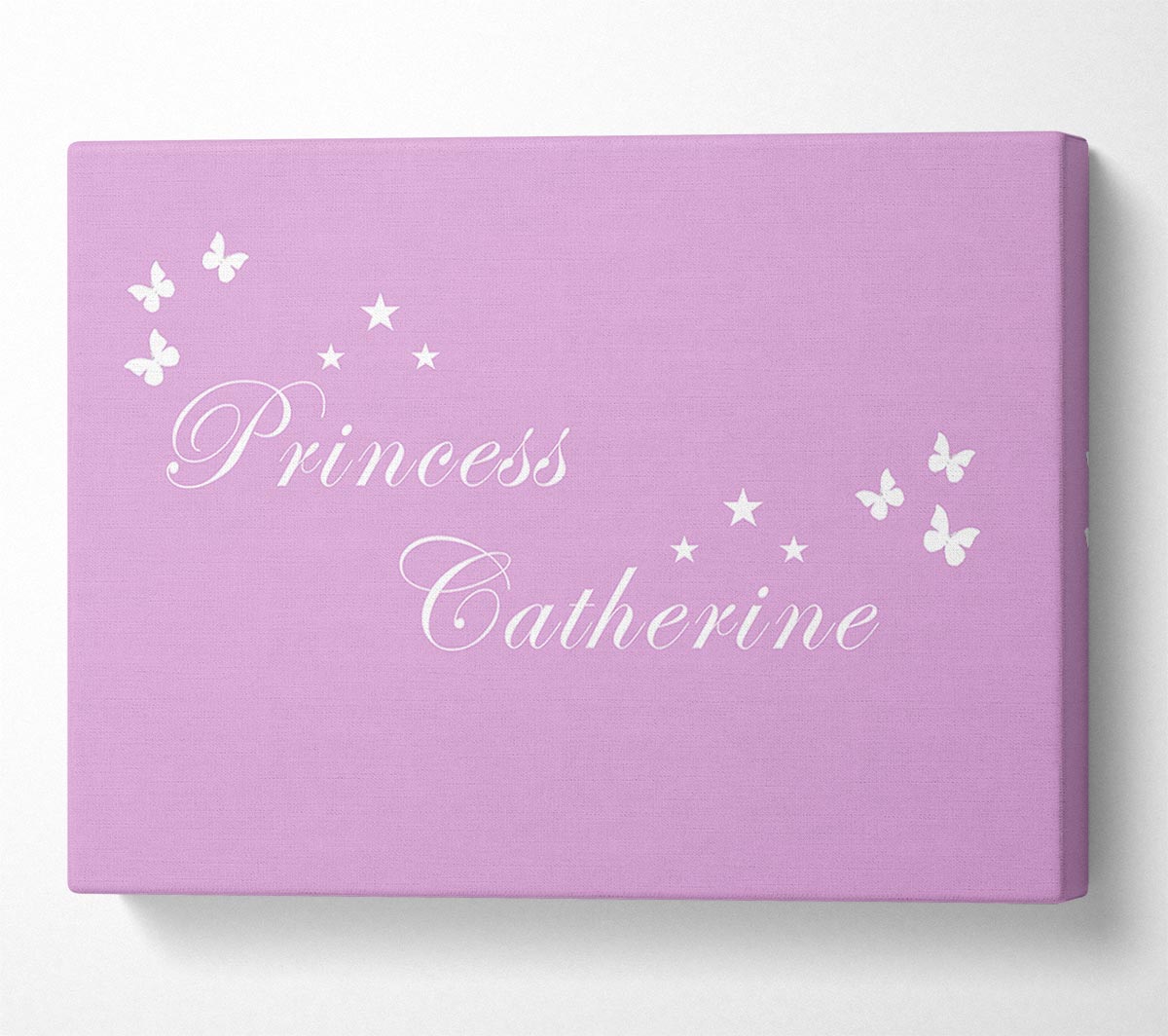 Your Own Name Princess Pink Canvas Print handmade in the UK. Stretched over a 2 inch thick wooden box frame, ready to hang on your wall.