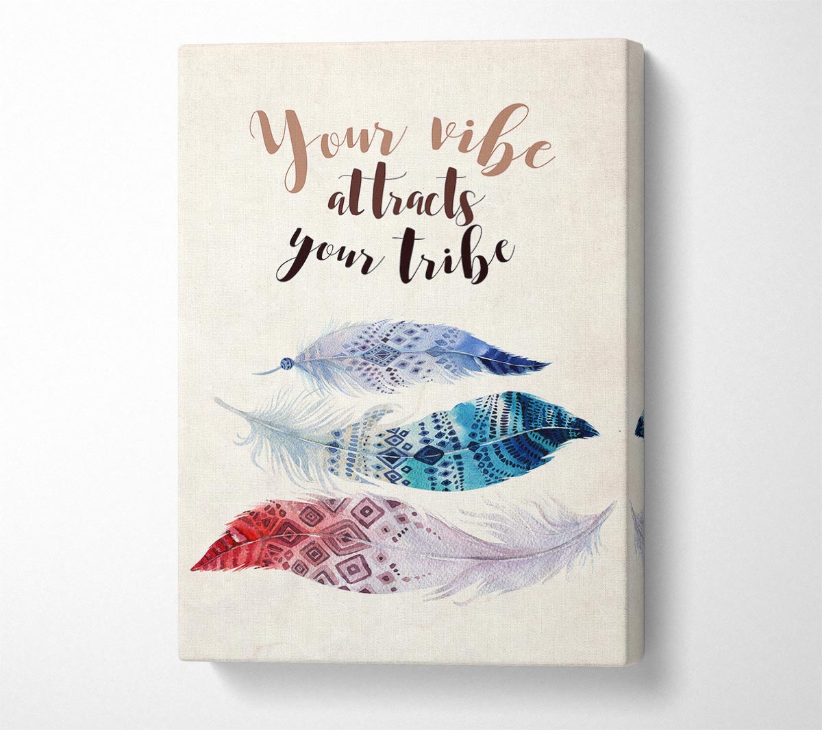 Your Vibe Attracts Your Tribe Canvas Print handmade in the UK. Stretched over a 2 inch thick wooden box frame, ready to hang on your wall.