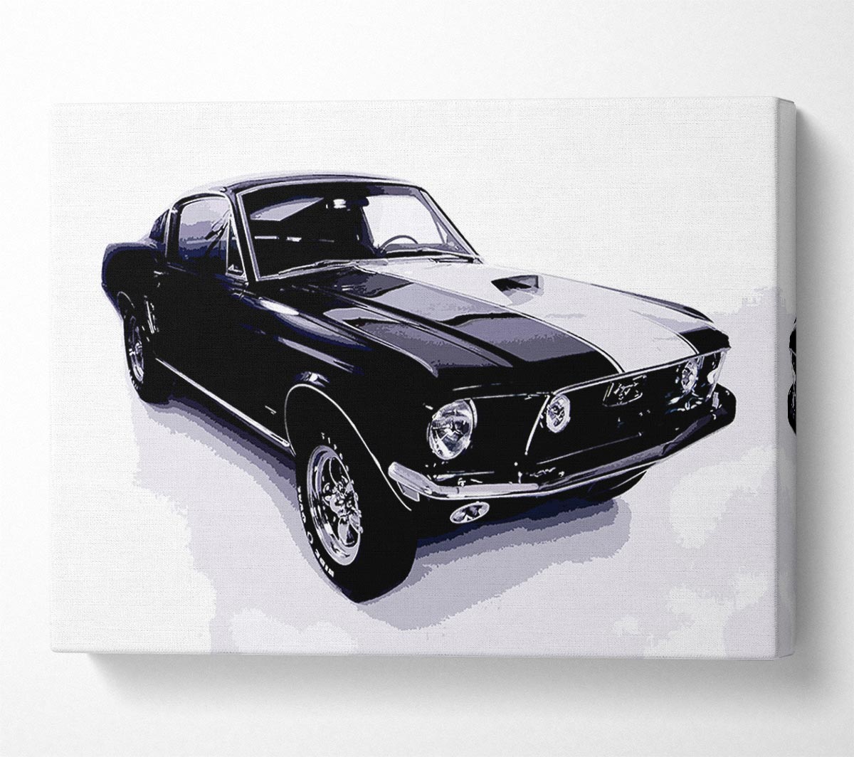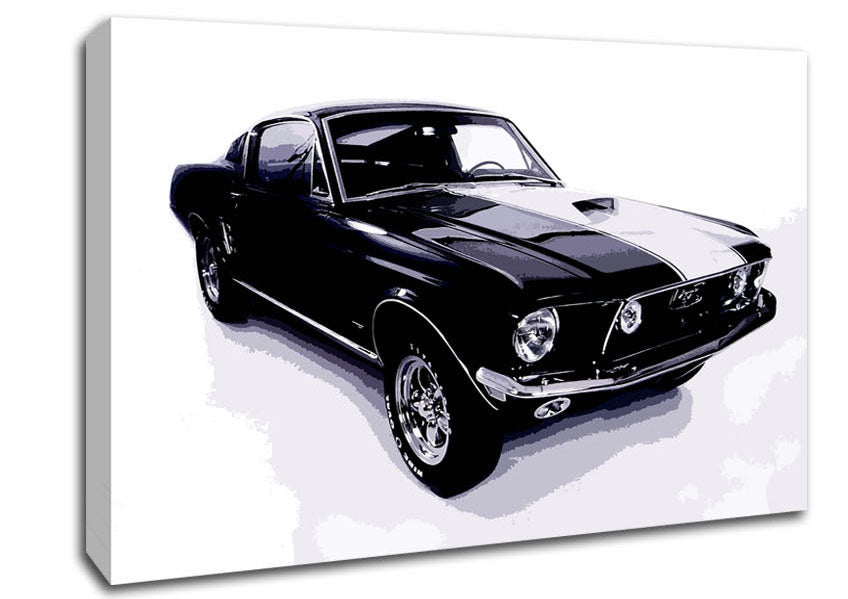 Mustang 67 B n W Canvas Print handmade in the UK. Stretched over a 2 inch thick wooden box frame, ready to hang on your wall.