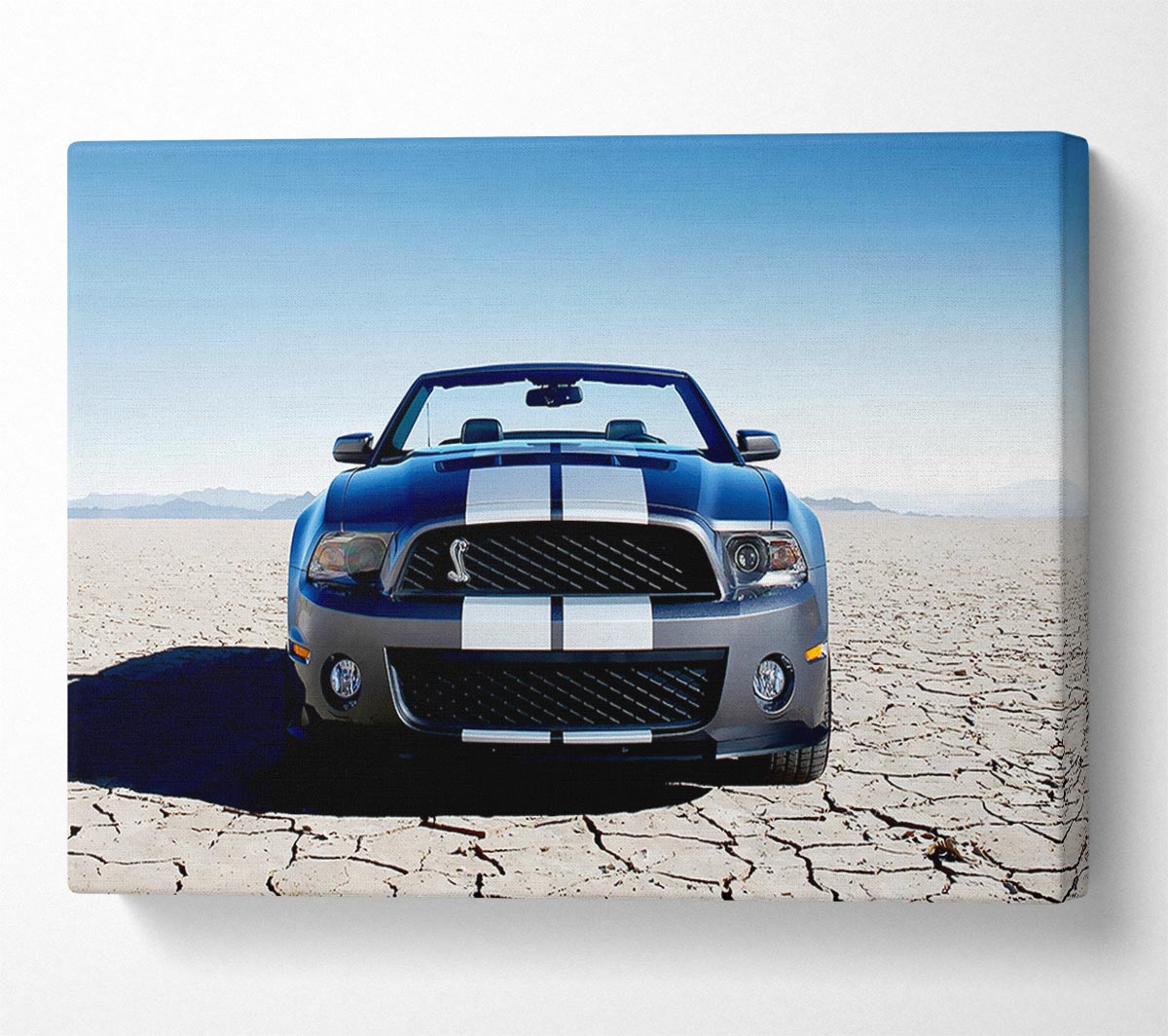 Mustang Shelby Front Profile Canvas Print handmade in the UK. Stretched over a 2 inch thick wooden box frame, ready to hang on your wall.