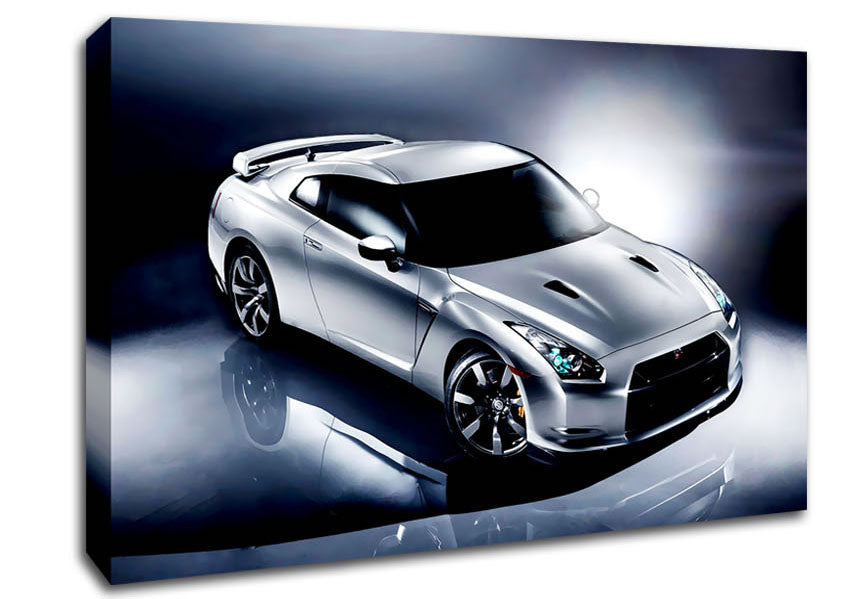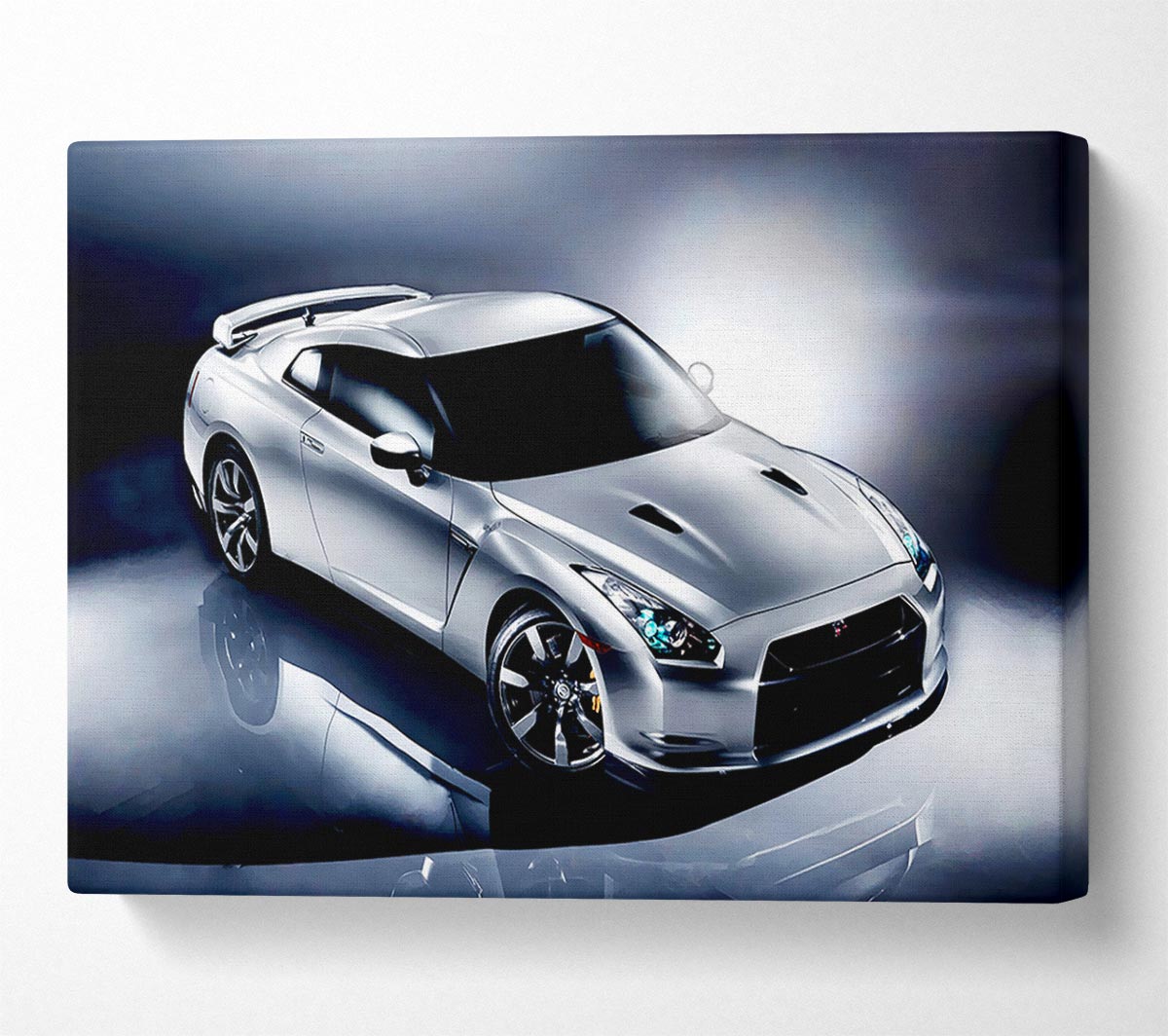 Nissan Skyline Silver Canvas Print handmade in the UK. Stretched over a 2 inch thick wooden box frame, ready to hang on your wall.