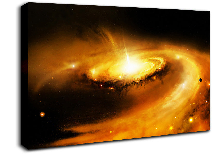 Golden Star Swirl Canvas Print handmade in the UK. Stretched over a 2 inch thick wooden box frame, ready to hang on your wall.