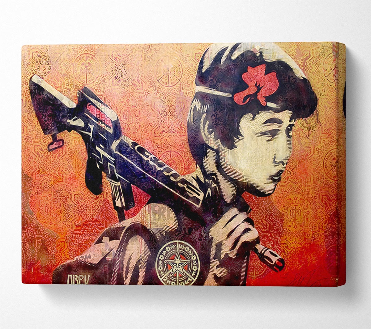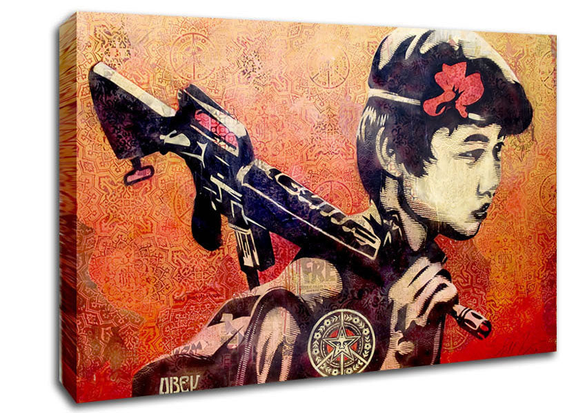 Child Soldier Canvas Print handmade in the UK. Stretched over a 2 inch thick wooden box frame, ready to hang on your wall.