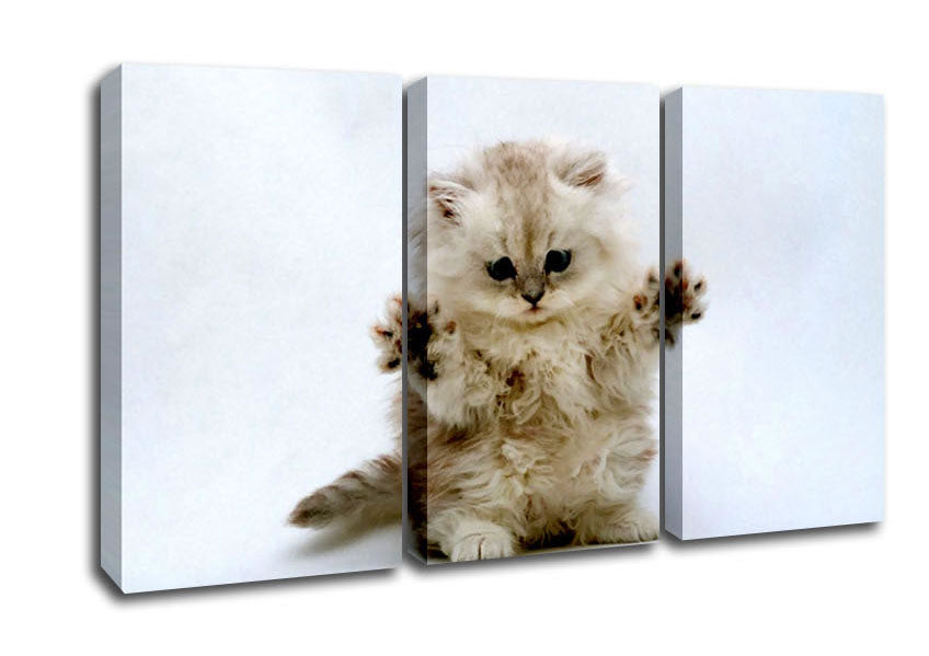 Cute Kitten Paws 3 Panel Canvas Print handmade in the UK. Stretched over a 2 inch thick wooden box frame, ready to hang on your wall.