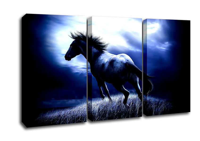 Dark Horse 3 Panel Canvas Print handmade in the UK. Stretched over a 2 inch thick wooden box frame, ready to hang on your wall.