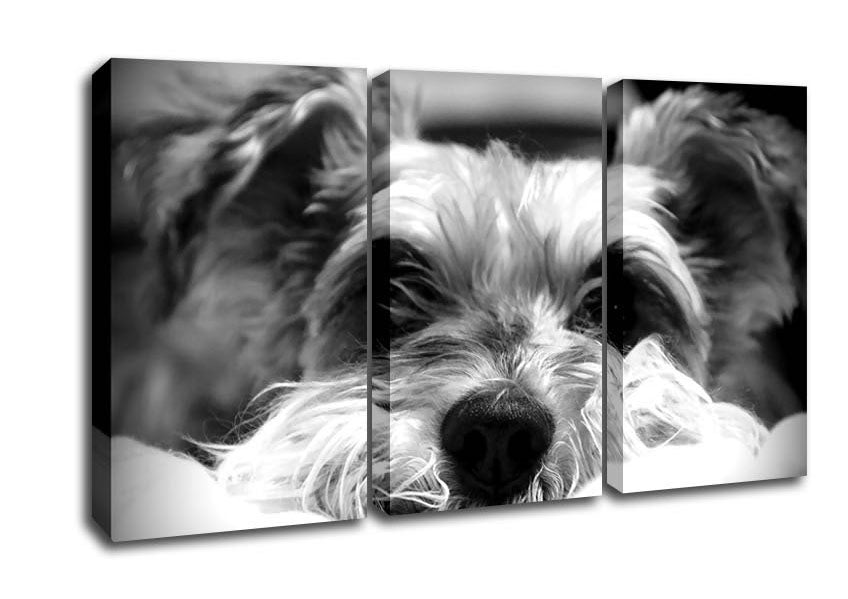 Dog B n W 3 Panel Canvas Print handmade in the UK. Stretched over a 2 inch thick wooden box frame, ready to hang on your wall.