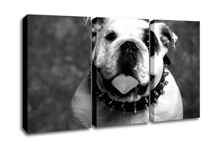 English Bulldog 3 Panel Canvas Print handmade in the UK. Stretched over a 2 inch thick wooden box frame, ready to hang on your wall.