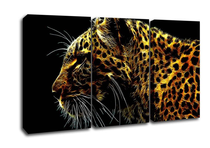 Leopard Glory 3 Panel Canvas Print handmade in the UK. Stretched over a 2 inch thick wooden box frame, ready to hang on your wall.